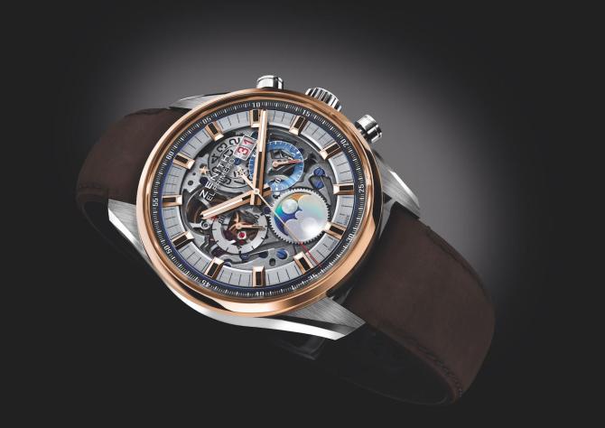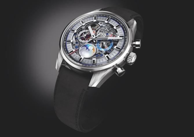 Jedną z ciekawszych tegorocznych nowości zaprezentowanych przez manufakturę Zenith, jest model Chronomaster El Primero Grande Date Full Open. Klasyczna już stylistyka tego modelu miała w założeniu projektantów otrzymać nową cechę, którą jest pewna transparentność całej konstrukcji. Nie zdecydowano się na wykonanie pełnego szkieletowania werku, które zresztą w tak skomplikowanej konstrukcji nie byłoby zadaniem prostym. Niemniej i tak odchudzono sporą ilość elementów. Zamiast tego postawiono na wykonaną ze szkła szafirowego tarczę, dzięki której możemy z obu stron podziwiać pracę legendarnego już werku El Primero.
