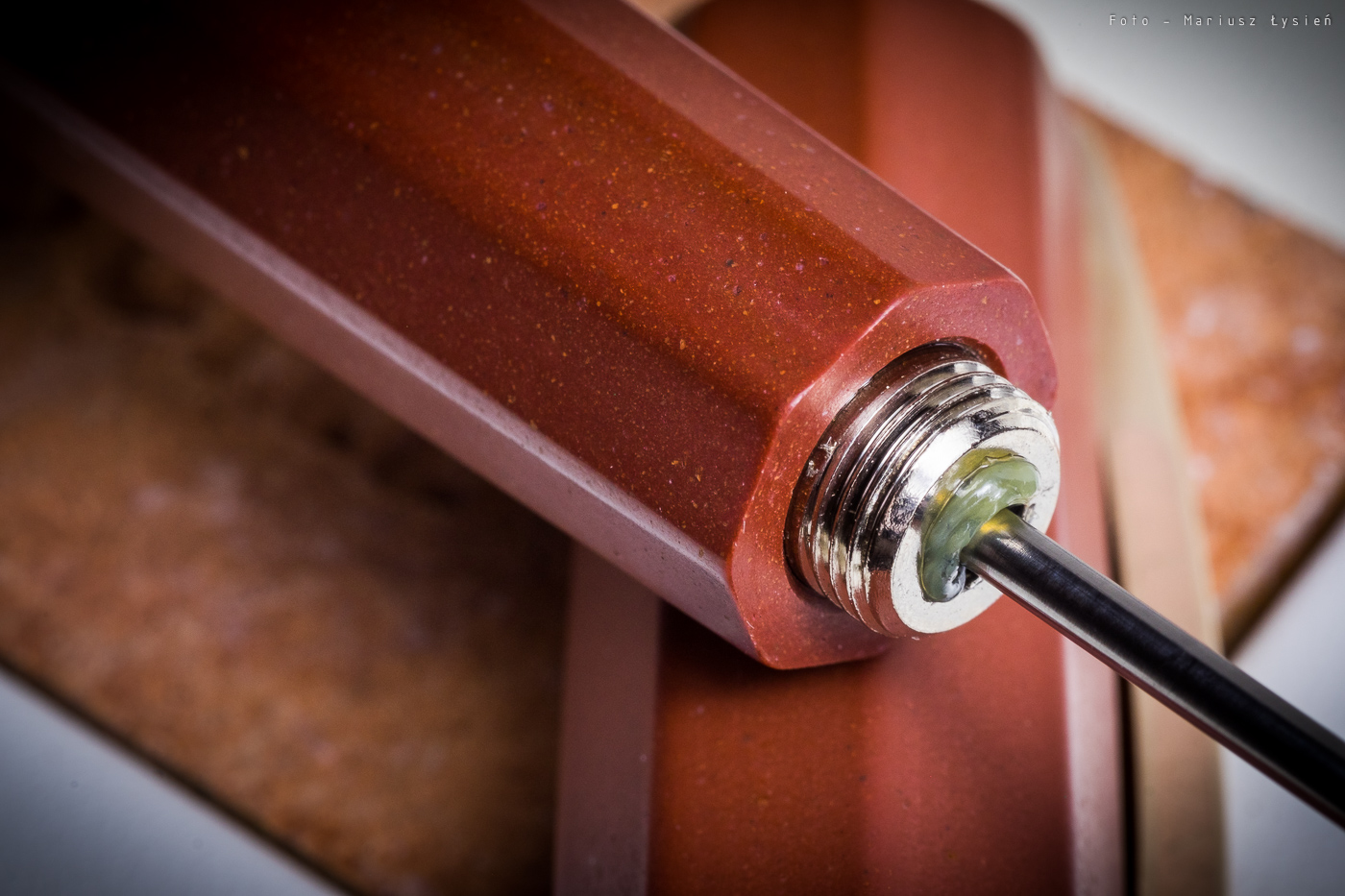 Jeżeli chodzi o system zasilania pióra, to producent zdecydował się na zastosowanie High Vacuum Power Filler. Takie rozwiązanie przekłada się na łatwe napełniania pióra oraz na spory zasób atramentu, jaki możemy przechowywać wewnątrz korpusu. To dobra wiadomość dla wszystkich, którzy sporo piszą. Jest to także niewątpliwy atut w przypadku mokrej kreski, jaką daje stalówka Dreamtouch, gdyż nie będzie potrzeby napełniania naszego przyboru piśmienniczego co chwila.