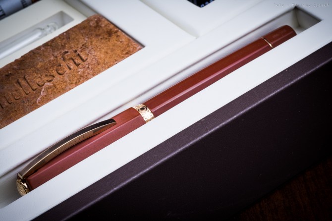 Materiał „cegiełki” nie jest przypadkowy również w odniesieniu do samego pióra. Koncepcja materiału jest wręcz identyczna z tą, którą zastosowano w przypadku zasadniczego modelu Homo Sapiens. Różnica polega na użyciu sproszkowanej terakoty zamiast bazaltu pochodzącego z lawy wulkanicznej. To niezwykle innowacyjne zastosowanie materiału, który jest jednym z najbardziej tradycyjnych budulców stosowanych przez człowieka.
