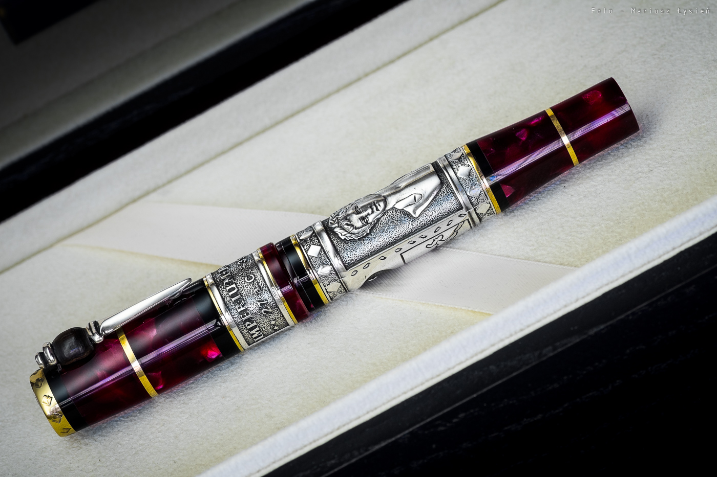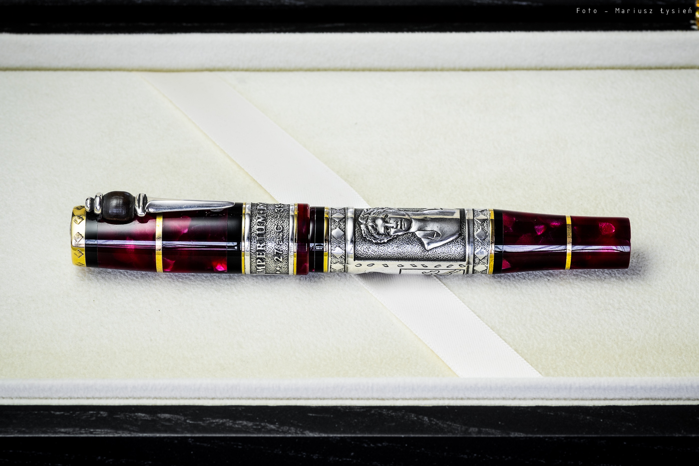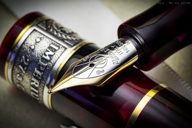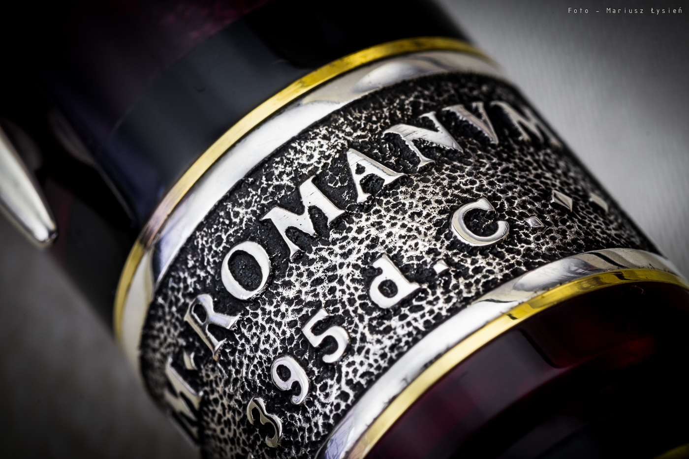 Marlen Imperium Romanum to przykład pięknie wykonanego pióra wiecznego, którego stylistyka jest zgrabnym balansem pomiędzy okazałymi zdobieniami, a elegancją. Niewątpliwie pióro to ma w sobie coś przyciągającego uwagę. Na pewno przyczynia się do tego kolorystyka oraz kontrast pomiędzy wiśniową/ bordową barwą żywicy, srebrem oraz jasnozłotymi akcentami. Cena jaką przyjdzie nam zapłacić w przypadku chęci zakupu nie jest niska, bowiem cena wynosi 7500zł. Trzeba jednak pamiętać, że producent oferuje nam elementy metalowe wykonane ze srebra, a produkt jest edycją limitowaną, w obrębie której wyprodukowano niewiele sztuk (zwłaszcza jak na tę cenę). Tak więc, jeżeli tylko pióra trafia w Twe gusta, a środki finansowe pozwalają na jego zakup, to polecam to pióro zdecydowanie.