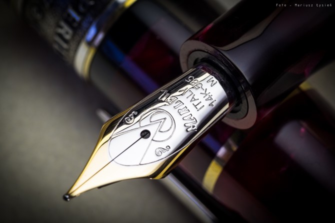 W testowanym egzemplarzu zamontowano dwukolorową stalówkę wykonaną z 14 karatowego złota próby 585. Szerokość kreski to „M”. Jak pisze ta stalówka? Muszę przyznać, że jest to kolejne pióro firmy Marlen, które mam przyjemność testować. Tak – to niewątpliwa przyjemność. Stalówka pisze gładko i ze sporą dozą przyjemnej elastyczności. Atrament jest podawany sprawnie, niezależnie od prędkości kreślenia po papierze.