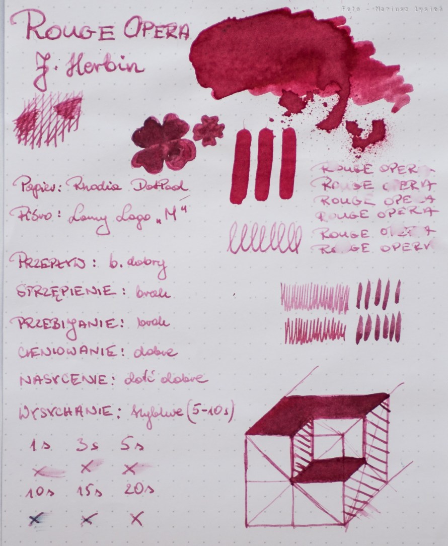 Rouge Opera to na pewno niestandardowy odcień, ale sprawdzi się nawet podczas codziennego pisania. Parametry zdecydowanie zasługują na dobrą ocenę, co w zestawieniu z ceną i możliwością kupna małej buteleczki (na próbę) sprawia, że zdecydowanie warto się na ten atrament skusić.