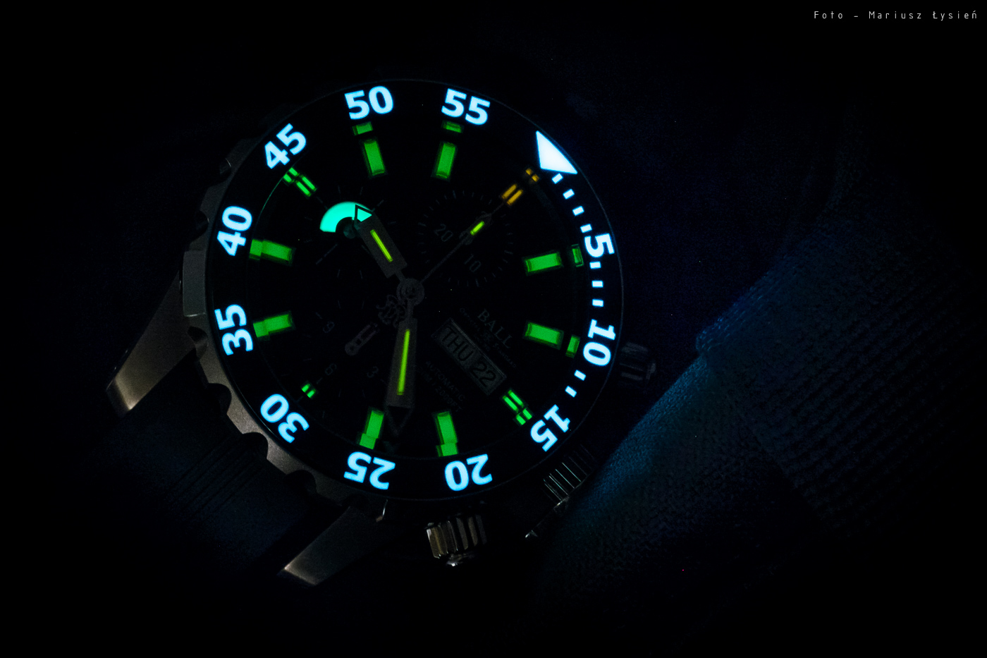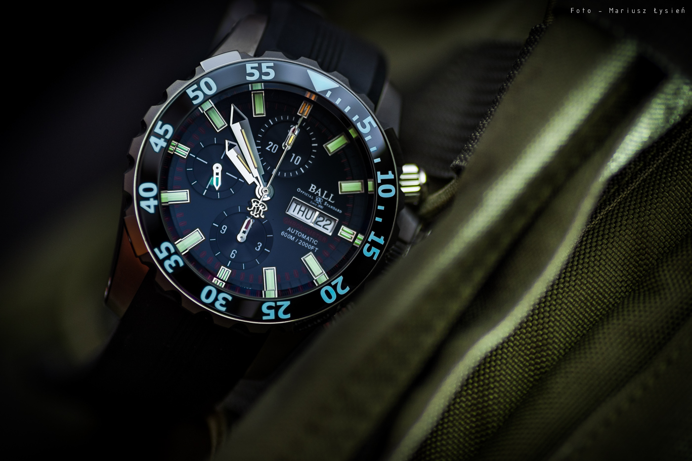 Zegarków firmy Ball byłem więcej niż ciekaw już od dłuższego czasu. Czasomierze tego producenta nie są specjalnie popularne w naszym kraju, co jednak pewnie się zmieni, gdyż od niedawna także w Polsce działa dystrybutor tej firmy. Obserwując fora branżowe, zauważyłem jednak, że jeżeli pojawia się jakikolwiek zegarek Ball na sprzedaż, to nie trzeba długo czekać ze znalezieniem nabywcy. Czasomierze tej firmy są kojarzone przede wszystkim z zastosowaniem trytowego podświetlenia elementów cyferblatu, dzięki czemu nawet w najtrudniejszych warunkach oświetleniowych mamy zapewnioną czytelność wskazań.