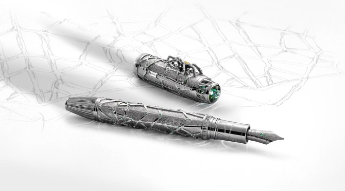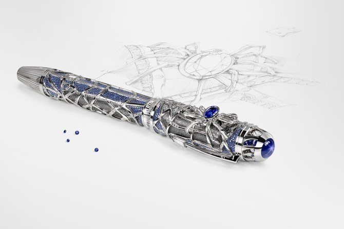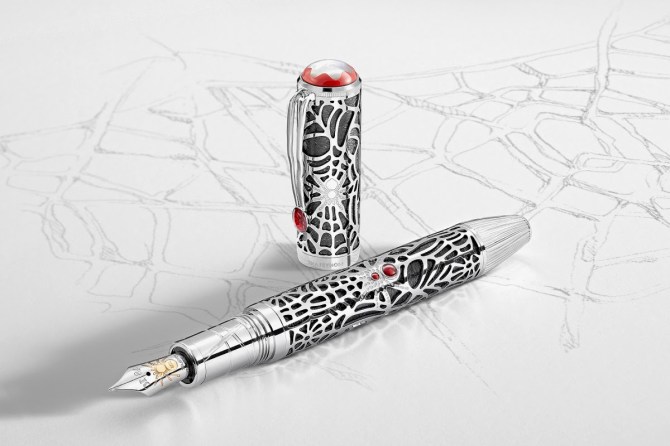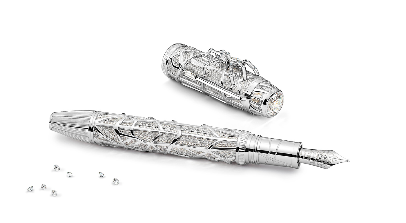 Mistrzowie pracujący dla firmy Montblanc kolejny raz przesuwają granice kreatywności. Pióra z serii Metamorphosis posiadają unikalną cechę użytkowania elementów pióra wiecznego jako biżuterii. Dzięki dołączonym do zestawu elementom, zdejmowany pająk może być noszony jako bransoletka, spinka lub broszka. Ma on symbolizować mitologiczną przemianę Arachne. Tajemnicza natura pająków zresztą przez stulecia inspirowała artystów. Motyw stał się szczególnie wyraźny pomiędzy końcem XVIII, a początkiem XX wieku. Pierwszy przybór piśmienniczy firmy Montblanc inspirowany pajęczym wzorem powstał w 1920 roku. Teraz po blisko stu latach motyw ten powraca w nowej odsłonie.