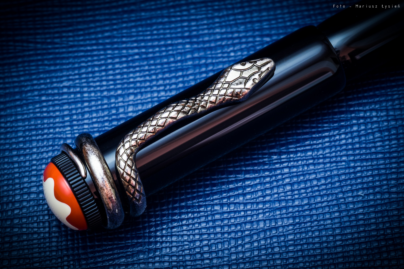 Stalówka została wykonana z 14 karatowego złota, a następnie została ona pokryta warstwą rodu. Na powierzchni tego elementu umieszczono podobiznę głowy węża. Producent deklaruje, że stalówka jest ręcznie wykańczana.