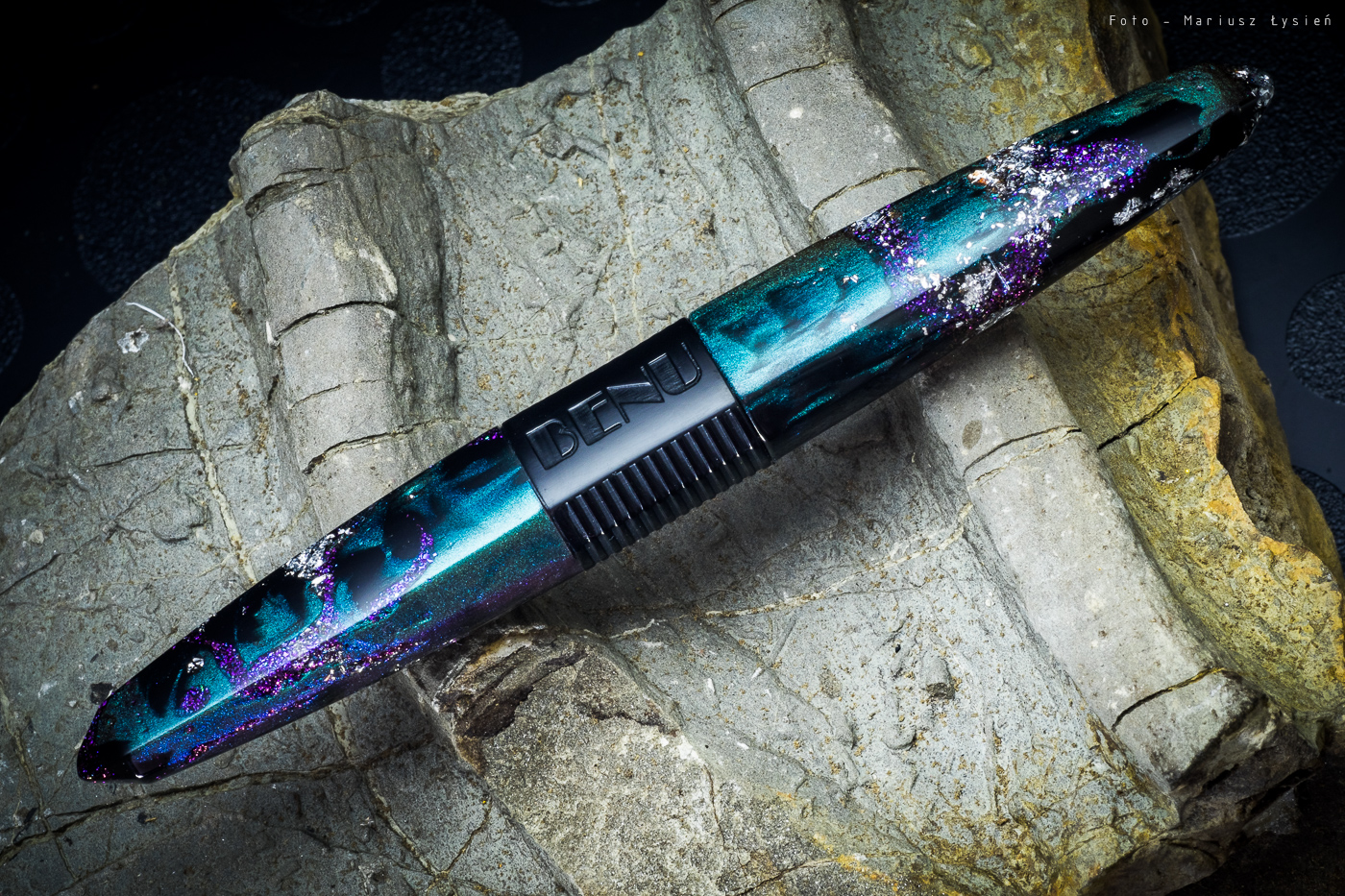 Pióra z kolekcji Chameleon firmy BENU stanowią bardzo ciekawą alternatywę dla wszystkich osób, które preferują używanie przyborów piśmienniczych o ciekawej kolorystyce. Tym co stanowi o atrakcyjności żywicy z której wykonano korpus oraz skuwkę, jest zmieniający się kolor w zależności od kąta patrzenia i padania świata na powierzchnię materiału. W przypadku wariantu o nazwie Graceful, kolory zmieniają się od odcieni zielonych, poprzez niebieskie, aż do purpurowych. Całość jest uzupełniona charakterystycznymi dla produktów BENU połyskującymi wstawkami.