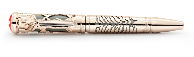 Pozłacany korpus ozdobiono motywem tygrysich pasów, przez które widoczna jest zielona żywica, której kolor również nawiązuje do barwy roślinności porastającej dżunglę. Ten sam zabieg stylistyczny zastosowano na skuwce – w tym przypadku jednak zmianie ulega motyw zwierzęcy – zamiast tygrysa umieszczono tutaj podobiznę małpy. Podobnie jak inne elementy metalowe, klips jest pozłacany. Jego kształt jest identyczny jak w podstawowym modelu. Skuwkę wieńczy perłowe logo firmy Montblanc, które otoczono żywicą w kolorze koralowym. Podpis autora z uwagi na rozbudowaną strukturę skuwki przeniesiono na sekcję.