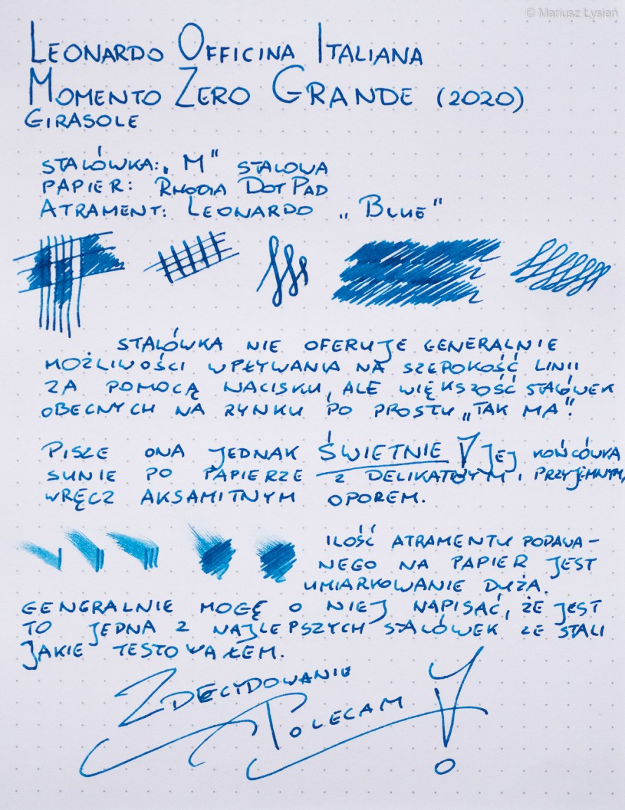 Podziękowania dla firmy Leonardo Officina Italiana za dostarczenie pióra do testu.