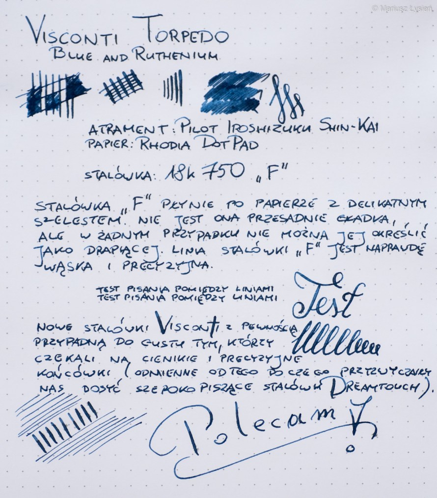 Visconti Torpedo Blue and Ruthenium to duże i piękne pióro wieczne, którego stylistyka jest bardzo charakterystyczna. Można powiedzieć, że w tym względzie jak i przez wzgląd na zastosowane materiały, stanowi ono udane połączenie pomiędzy tradycją i nowoczesnością. Zdecydowanie polecam.