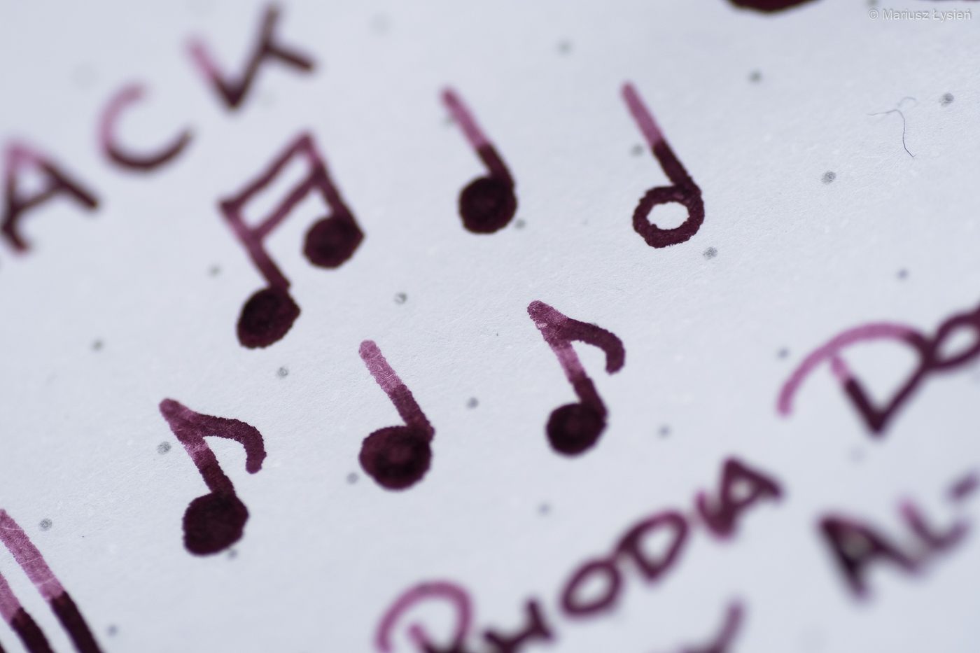 Strzępienie i przebijanie nie są widoczne na papierze Rhodia DotPad. Przepływ jest bardzo dobry, dzięki czemu nie będziemy mieli problemów z podawaniem atramentu niezależnie od tempa sporządzania notatek.