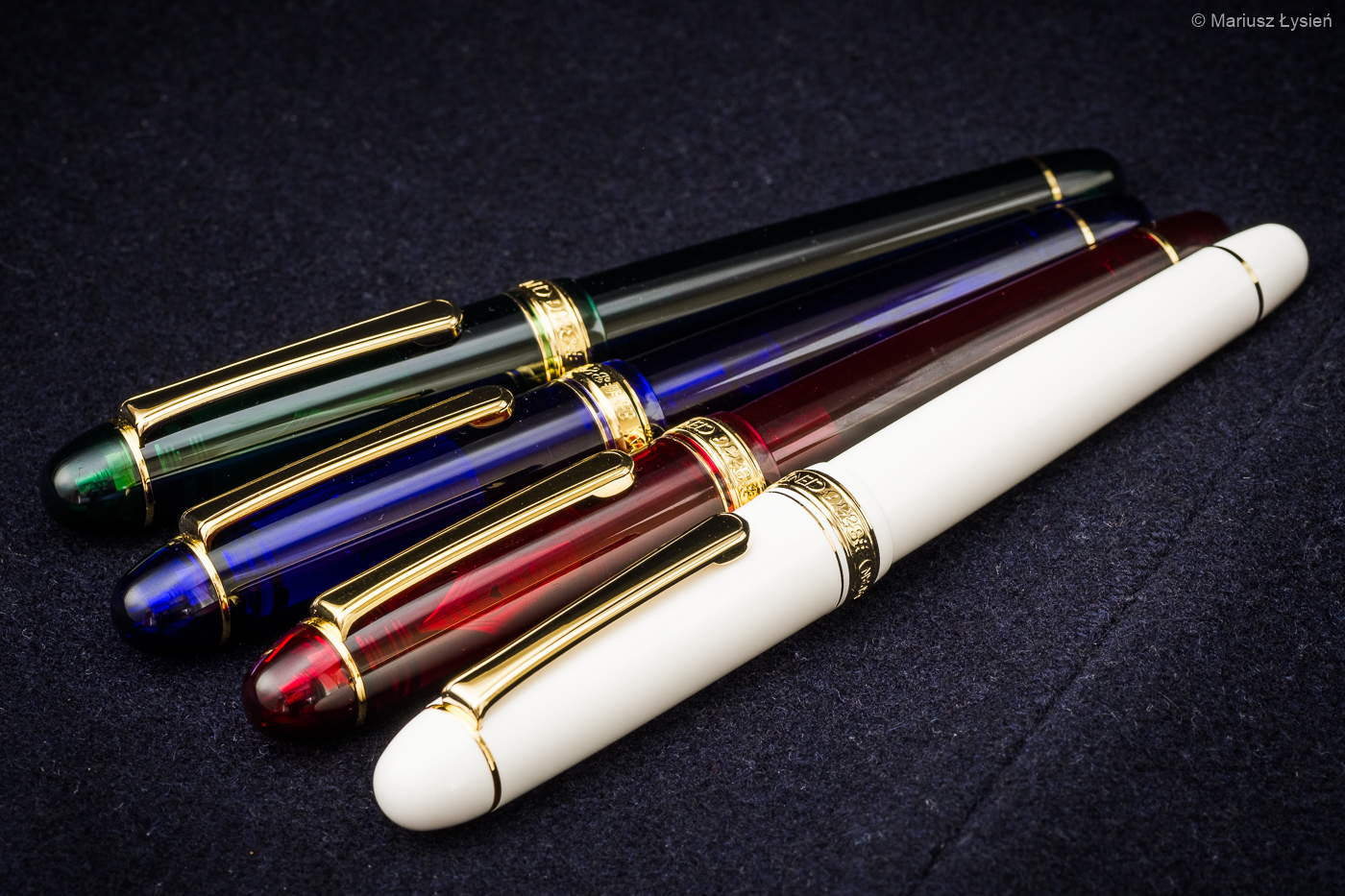 Pióro Platinum #3776 Century testowaliśmy już na łamach Zegarki i Pióra blisko sześć lat temu. Od tego momentu nie zmieniono jego kształtów, materiałów czy zastosowanych rozwiązań technicznych wedle zasady, że dobre nie wymaga poprawy. Jeżeli chcecie zapoznać się z pełnym testem to znajdziecie go TUTAJ. W niniejszym artykule jednak chciałbym krótko zaprezentować i porównać cztery rodzaje stalówek, do przetestowania których nadarzyła się okazja. W materiale, do którego odesłałem przed momentem, mieliśmy stalówkę M – teraz również taka pojawiła się w zestawieniu, niejako referencja.