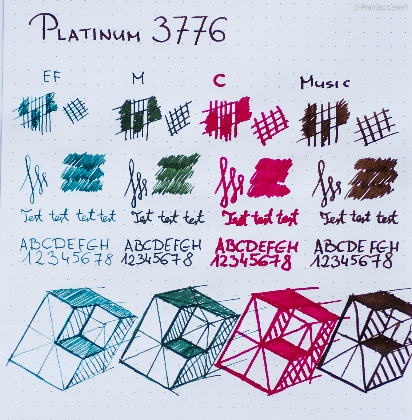 Platinum 3776 rzeczywiście w standardowej ofercie ma także dostępne nietypowe stalówki. Przez długi czas używałam stalówki C, która znalazła zastosowanie do wypisywania kartek. Stalówka pożera wiele, wiele atramentu, co jest zaletą dla osób mających duże jego zapasy. W przypadku stalówki Music, zgadzam się, że jej zastosowanie jest bardziej uniwersalne. Jednakże w przypadku stalówki Music, wiele osób jej nie wybiera ze względu na wyższą od standardowych cenę.