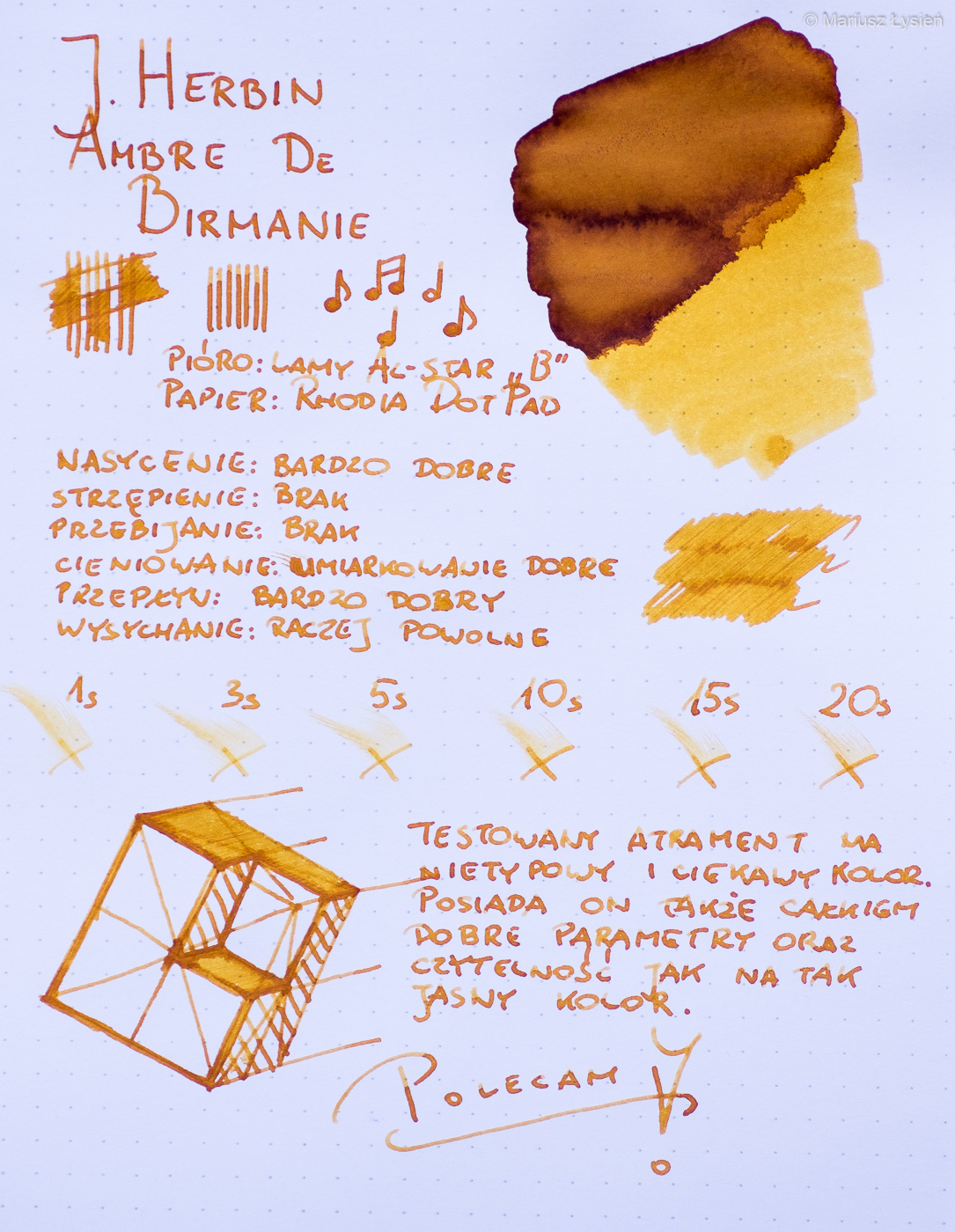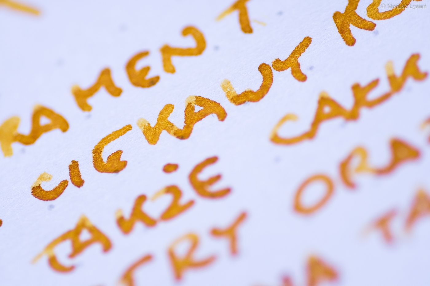 J. Herbin – Ambre de Birmanie to atrament, który polecam. Dobre parametry i ciekawy kolor sprawiają, że z pewnością co jakiś czas będzie gościł w którymś z moich piór wiecznych.