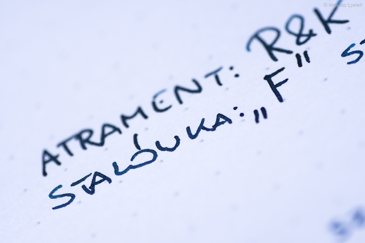 Wykonana ze stali nierdzewnej stalówka została ozdobiona logo producenta. Stalówka pisze bardzo dobrze. Atrament podawany jest bardzo sprawnie niezależnie od prędkości kreślenia linii. Ze względu na zastosowany materiał, stalówka nie oferuje nazbyt wielkich możliwości wpływania na szerokość linii za pomocą zmiany siły docisku do papieru. Zmiany szerokości kreski są raczej subtelne. Stalówka prowadzi się bardzo dobrze i oferuje odpowiednio dużą precyzję kreślenia. Atrament jest podawany bardzo sprawnie – do tego w całkiem sporej ilości, co pozwala na odpowiednie nasycenie linii kolorem. Zdecydowanie stalówka ta zasługuje na ocenę bardzo dobrą. Jest to zresztą jedna z lepszych stalówek wykonanych ze stali nierdzewnej z jaką się zetknąłem.