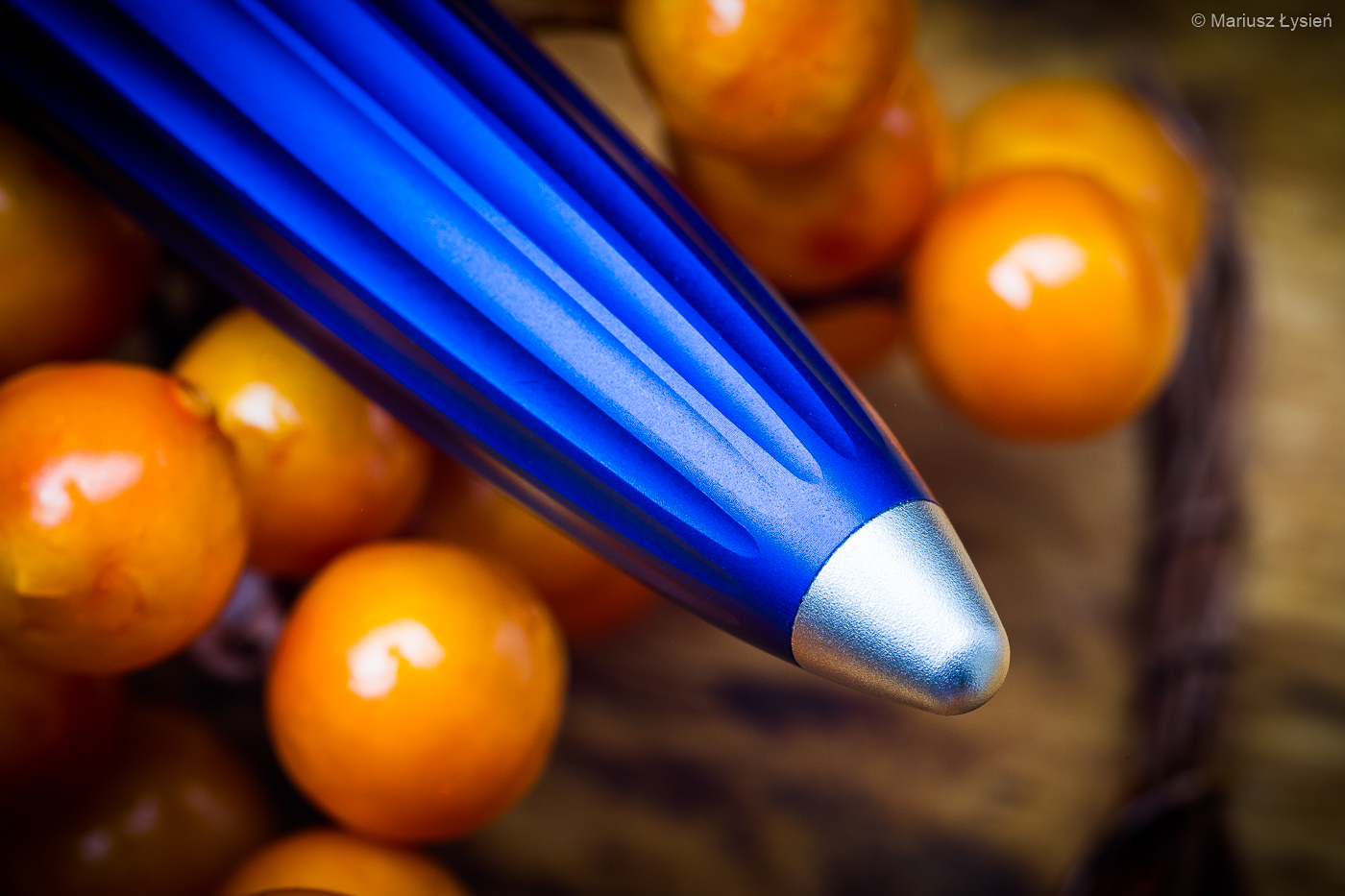 Wracając jednak do piór. Wykonanie ich z lekkiego metalu sprawia, że nawet długotrwale użytkowanie nie powoduje zmęczenia dłoni. Klasyczny, przypominający cygaro kształt, wraz z metalową sekcją sprawiają, że całość jest dobrze wyważona. Dla osób, które nie lubią, gdy, sekcja jest metalowa, mam dobrą wiadomość. Jej powierzchnia jest lekko chropowata, przez co trzyma się ją pewnie i nie wyślizguje się z dłoni. Zaryzykuję nawet stwierdzenie, że połączenie rodzaju metalu oraz faktury sprawia, że nie odczuwamy tego, iż trzymamy metal.