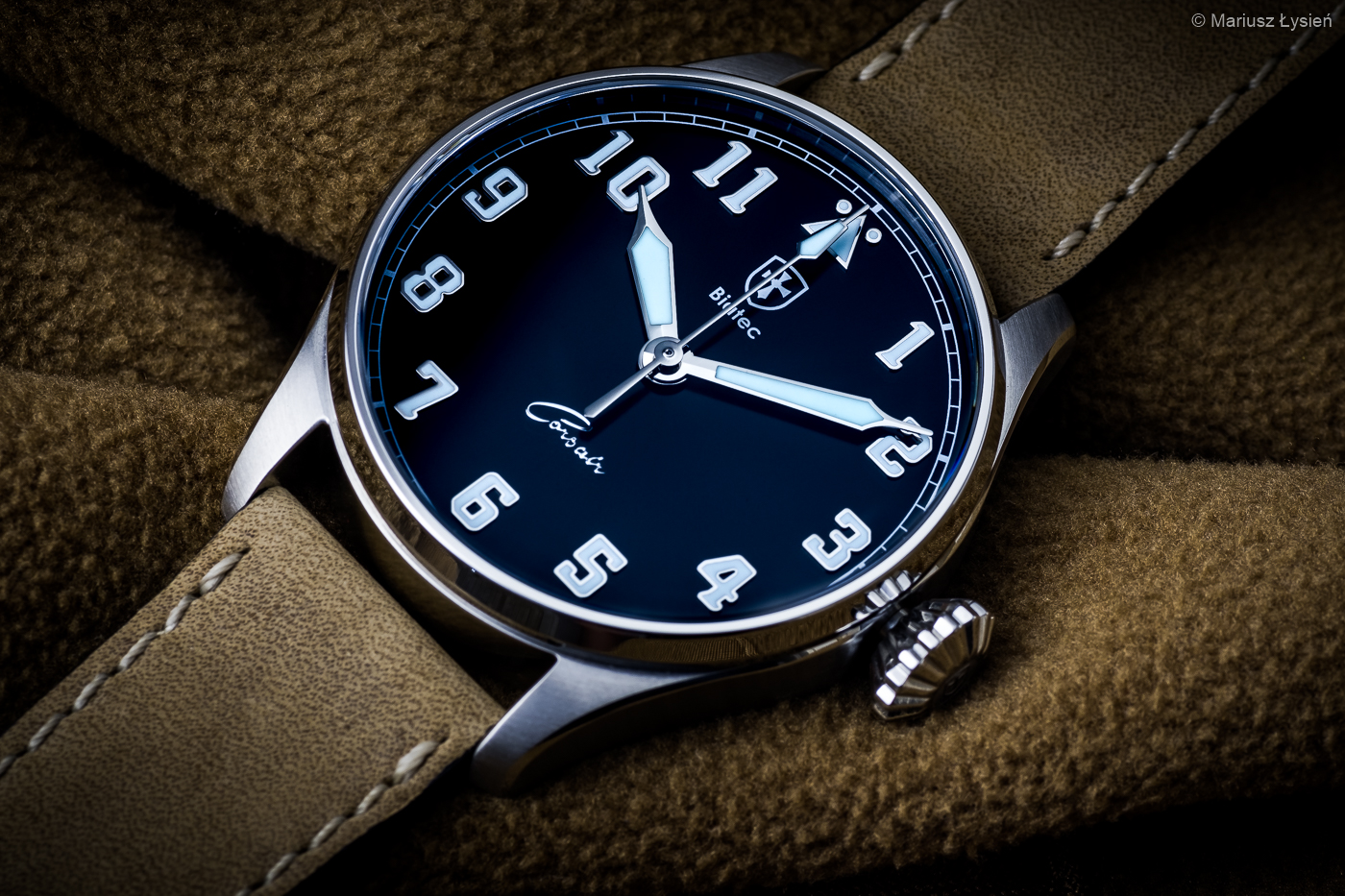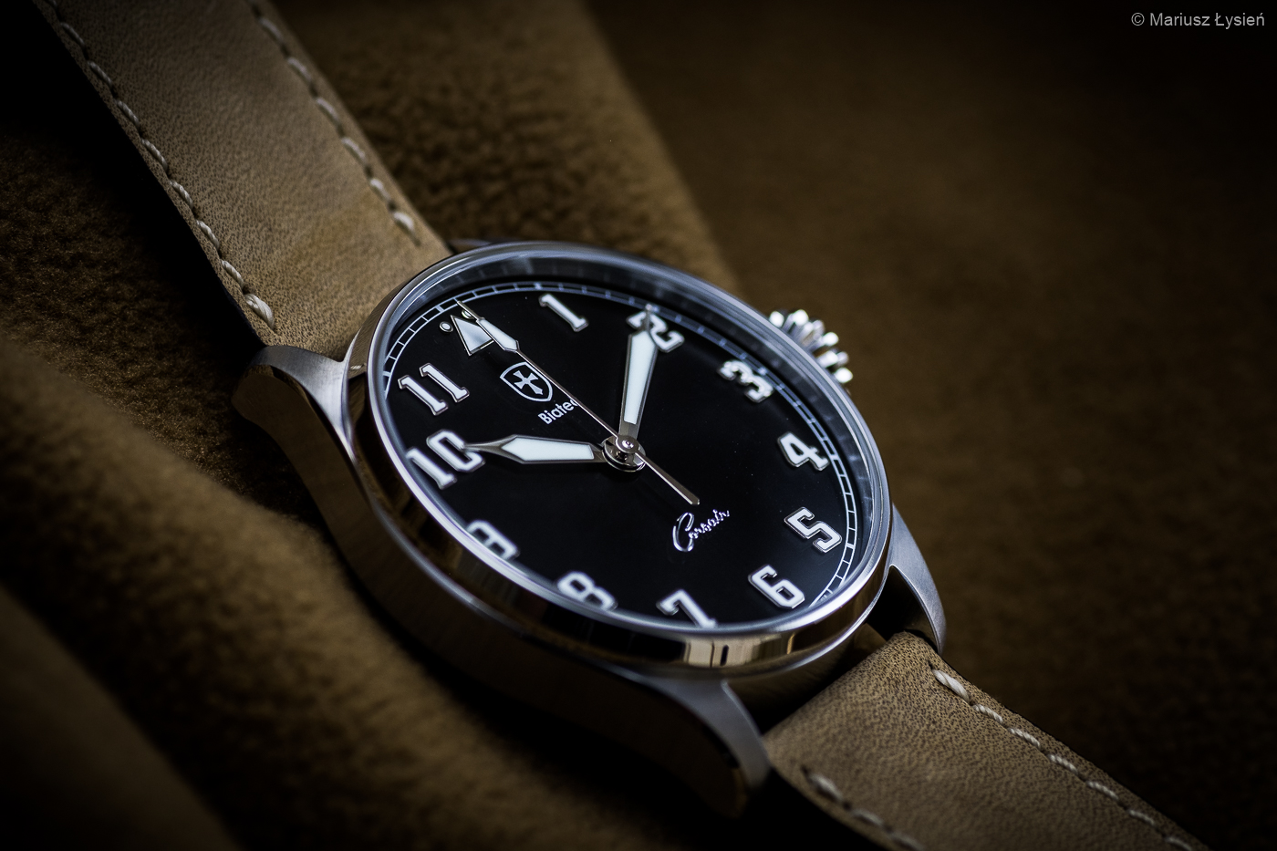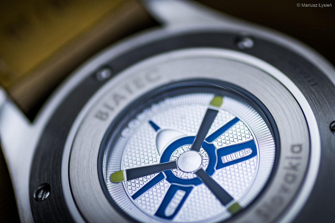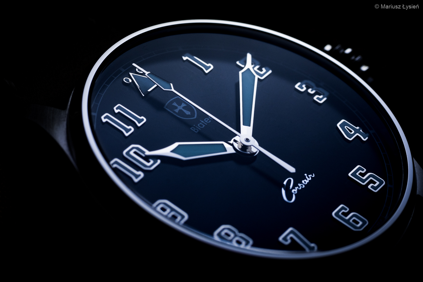 Biatec Corsair CS01F to bardzo interesujący zegarek typu „pilot”. Projekt jest dokładnie taki jakiego oczekiwalibyśmy po czasomierzu o tej stylistyce – jest prosto i przejrzyści. Miłym akcentem jest fakt, że na przykład cyferblat nie jest kopią innych projektów, co zdarza się wielu producentom, którzy momentami nieco zbyt mocno inspirują się pierwowzorem. Tył zegarka również prezentuje się doskonale. Cieszy także dbałość o jakość wykonania – wszystkie elementy zostały wycięte i oszlifowane bardzo dobrze, dzięki czemu nawet oglądając je pod dużym powiększeniem nie znajdziemy niedoróbek. Tarcza czy wskazówki również są idealnie czyste, co wbrew pozorom nie jest standardem. W cenie 1380 Euro uważam, że jest to z pewnością jedna z najciekawszych propozycji – dla mnie byłaby wręcz faworytem w wyborze zegarka typu „pilot” we wspomnianym budżecie.