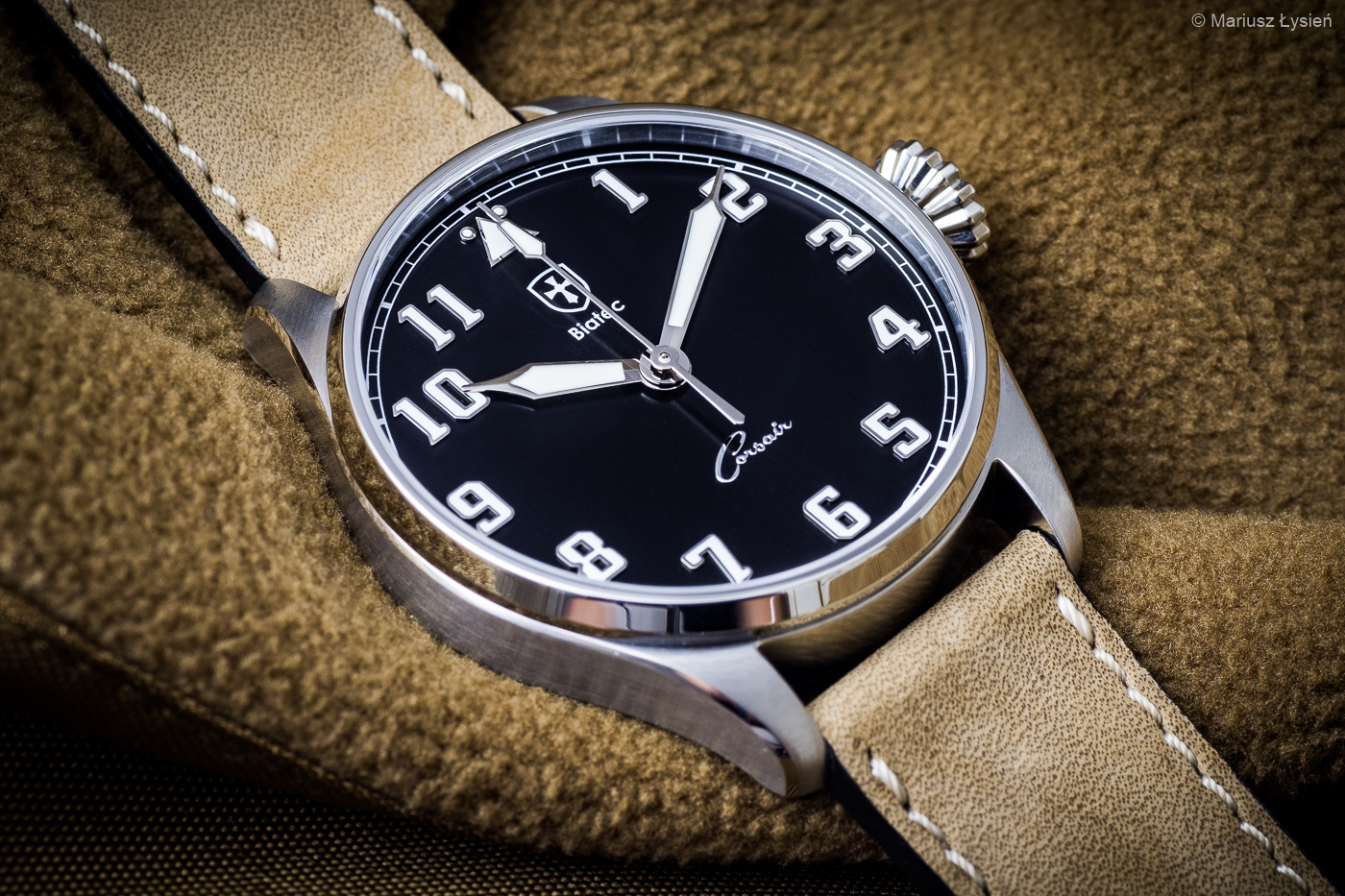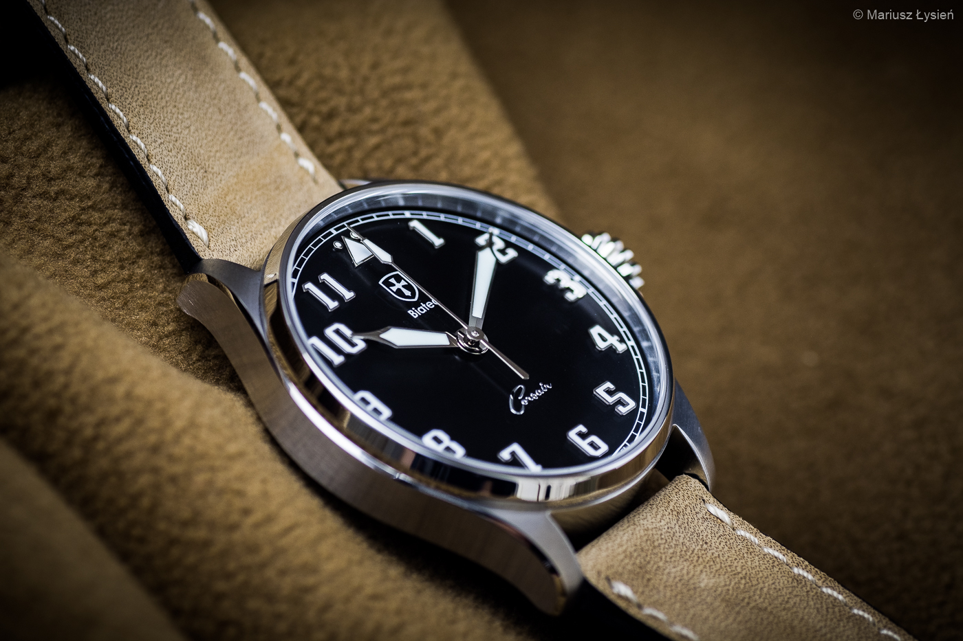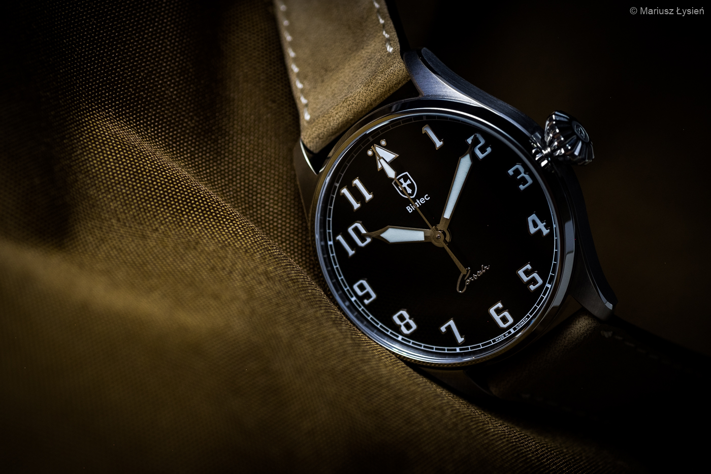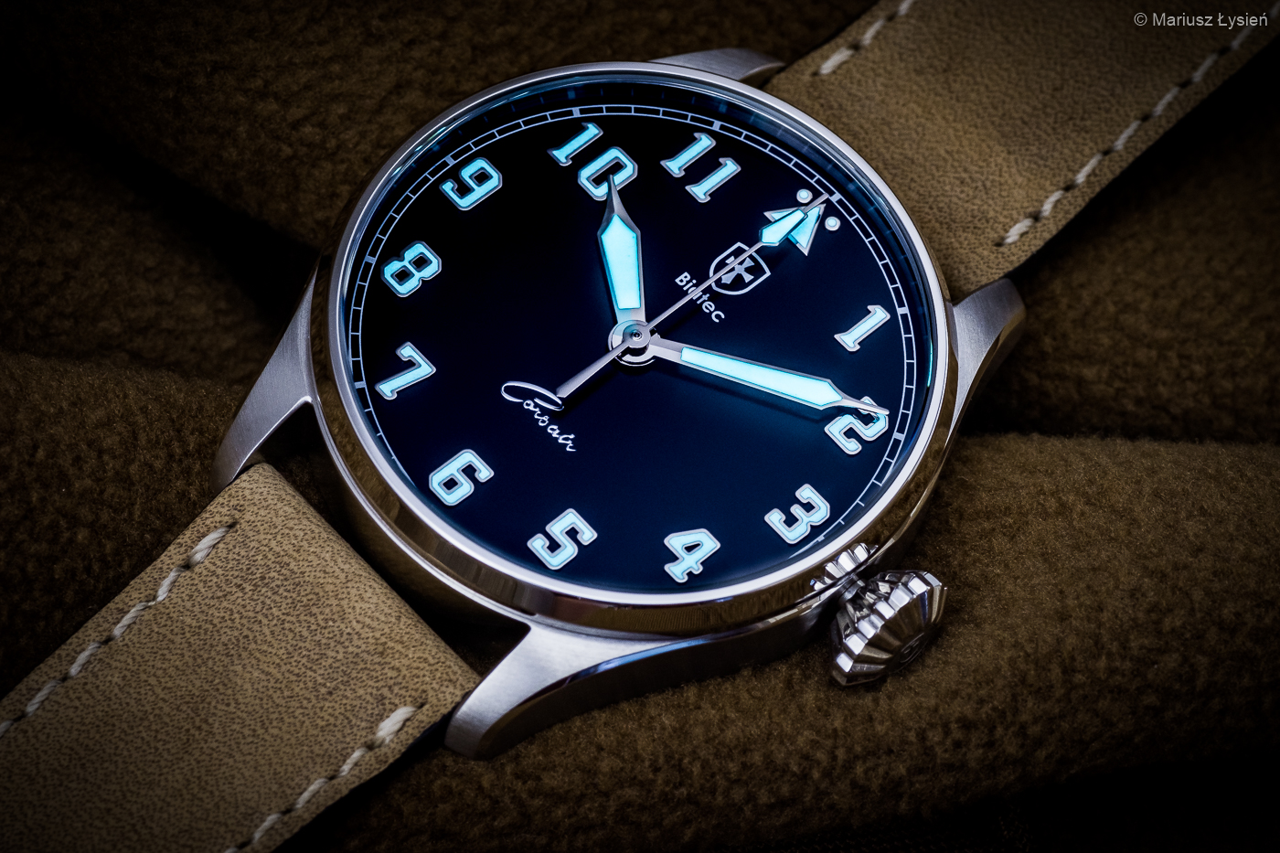 Biatec Corsair CS01F to bardzo interesujący zegarek typu „pilot”. Projekt jest dokładnie taki jakiego oczekiwalibyśmy po czasomierzu o tej stylistyce – jest prosto i przejrzyści. Miłym akcentem jest fakt, że na przykład cyferblat nie jest kopią innych projektów, co zdarza się wielu producentom, którzy momentami nieco zbyt mocno inspirują się pierwowzorem. Tył zegarka również prezentuje się doskonale. Cieszy także dbałość o jakość wykonania – wszystkie elementy zostały wycięte i oszlifowane bardzo dobrze, dzięki czemu nawet oglądając je pod dużym powiększeniem nie znajdziemy niedoróbek. Tarcza czy wskazówki również są idealnie czyste, co wbrew pozorom nie jest standardem. W cenie 1380 Euro uważam, że jest to z pewnością jedna z najciekawszych propozycji – dla mnie byłaby wręcz faworytem w wyborze zegarka typu „pilot” we wspomnianym budżecie.
