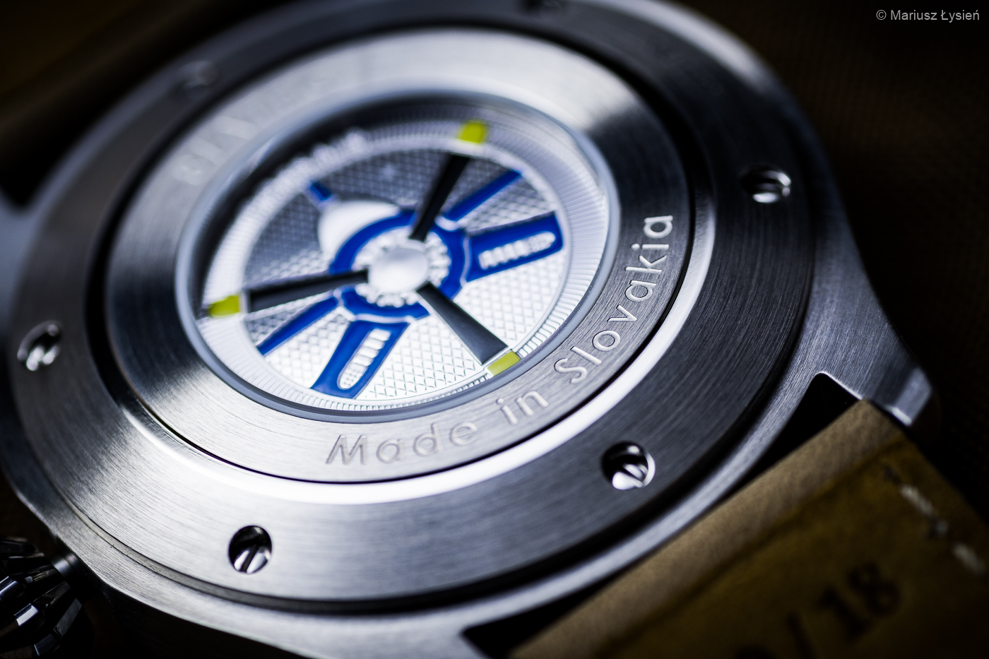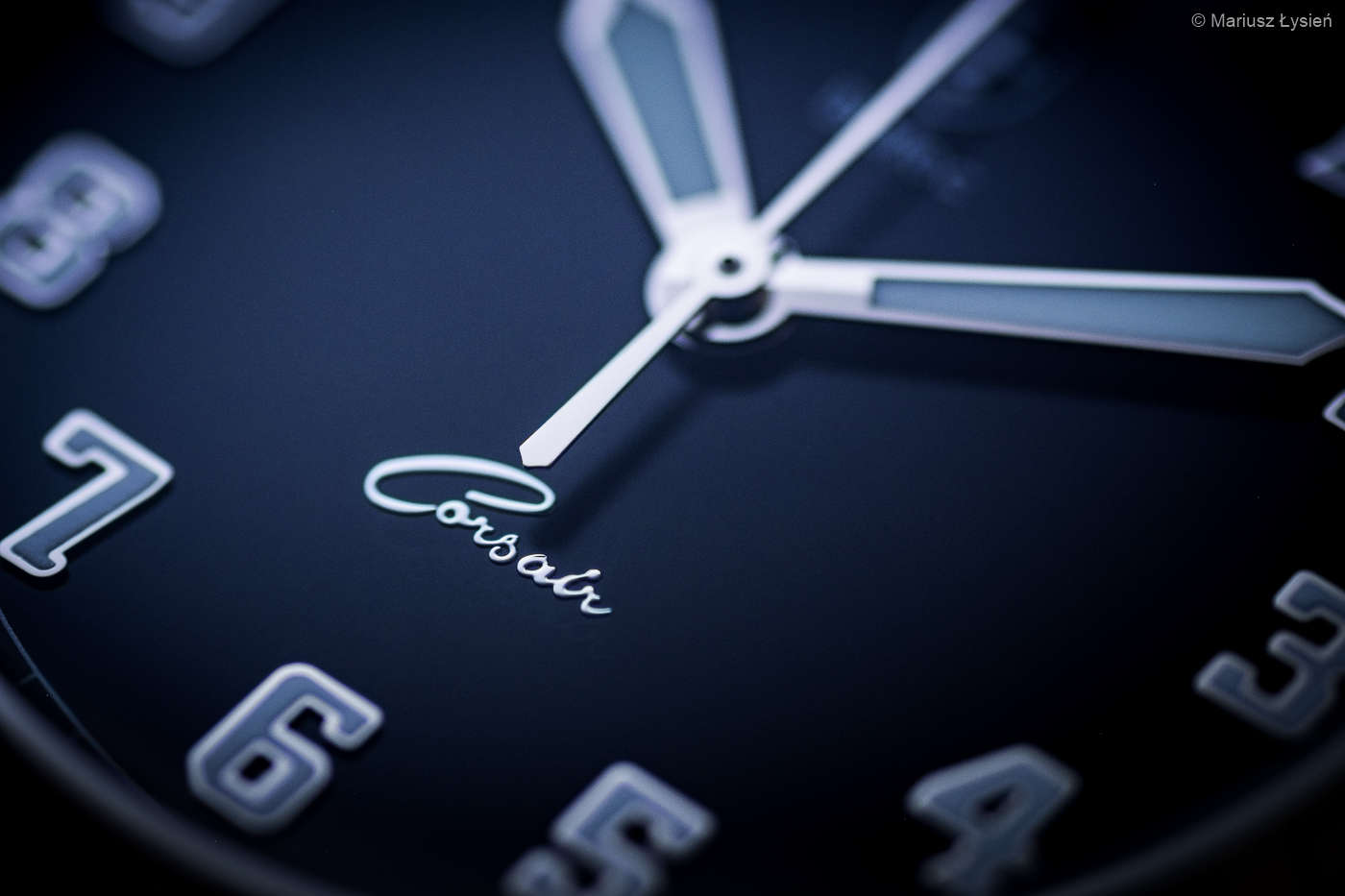 Tytułowy zegarek opisywaliśmy już na łamach Zegarki i Pióra, jednak niedawno dzięki uprzejmości producenta mogliśmy się przyjrzeć najnowszej wersji tego czasomierza. Zapraszam do zapoznania się z opisem wariantu Corsair 01 oraz Corsair 05, gdyż koperta czy cyferblat pozostały takie same (co w 05). To co uległo największym zmianom, to serce zegarka oraz projekt rewersu zegarka. Obecnie w tym modelu montuje się werk Sellita SW200-1 z automatycznym naciągiem chodu. Przeprojektowany tył zegarka prezentuje teraz lakierowany częściowo motyw przedstawiający jakże znany samolot, od którego nazwę przejął ten model czasomierza. Świetnie prezentuje się także pozostała część dekla, na której ograniczono dodatkowe informacje do niezbędnego minimum – można nawet napisać, że znajdziemy tutaj tylko nazwę producenta oraz informację o tym, że zegarki są produkowane na Słowacji.