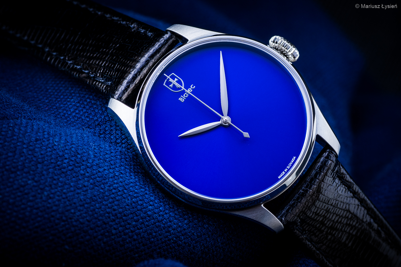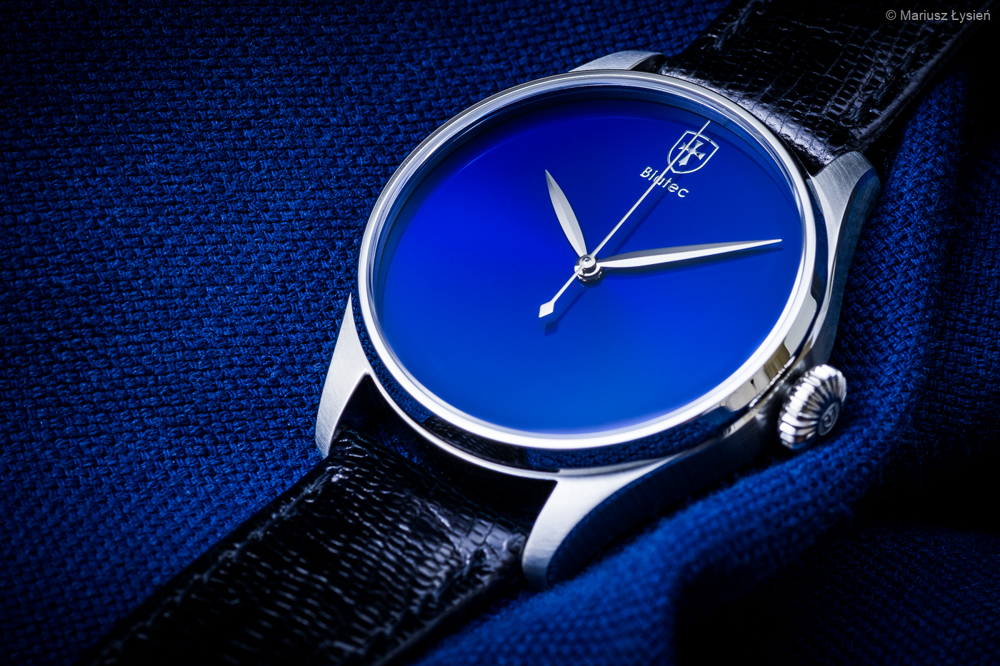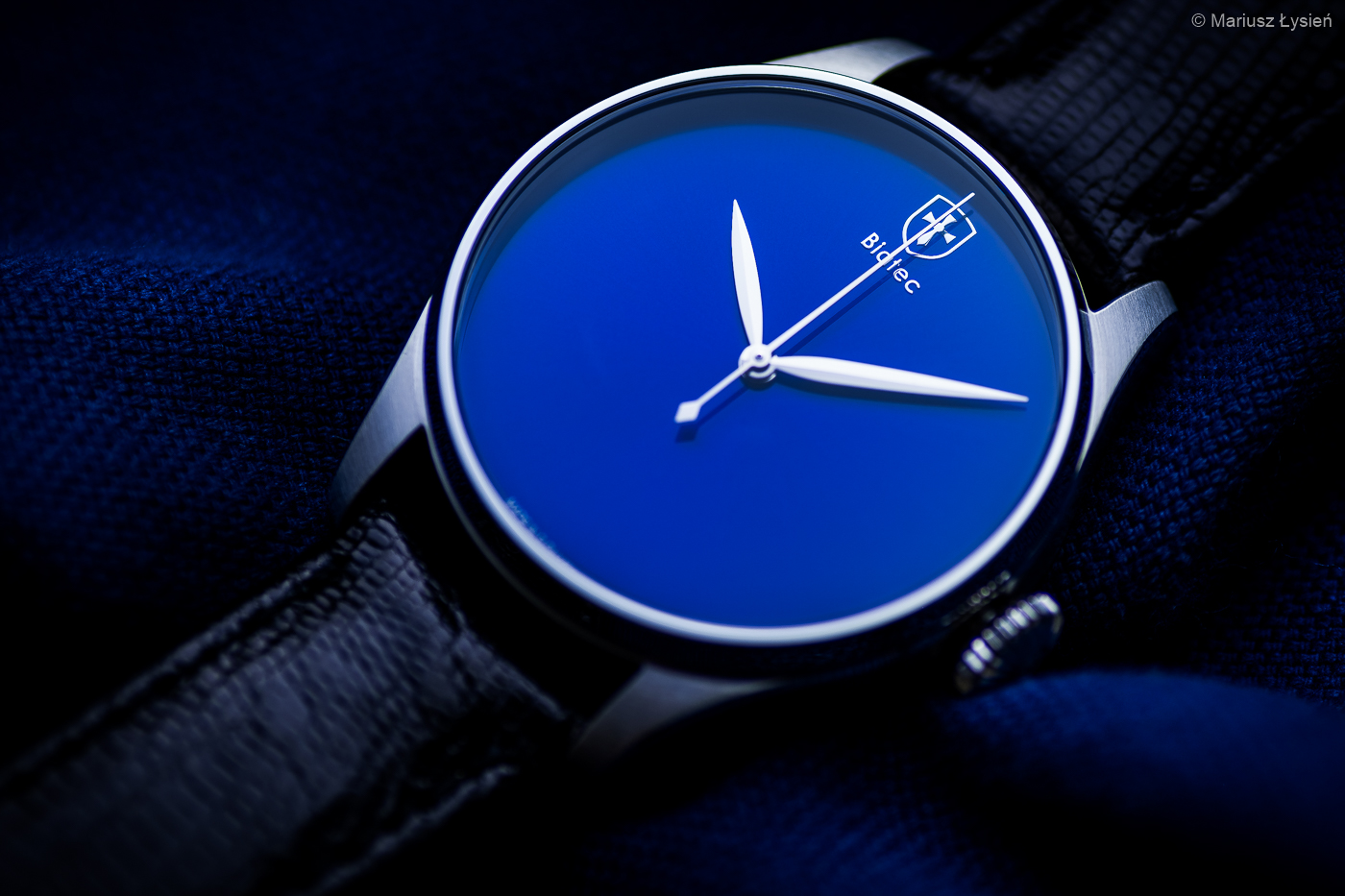 O cyferblacie nie można napisać zbyt wiele, poza tym, że prezentuje się zjawiskowo. Szafirowo-niebieska powierzchnia została dodatkowo ozdobiona szlifem słonecznym. Centralnie osadzone wskazówki prezentują się wyśmienicie, połyskując delikatnie nad urzekającą głębią koloru. Na cyferblacie umieszczono wyłącznie logo producenta oraz informację o kraju produkcji zegarka. Nie znajdziemy tutaj żadnych indeksów godzinowych czy też minutowych. Pierwsze wrażenie jest specyficzne – ma się wrażenie, że zegarek będzie trudny w codziennym użytkowaniu. Przez pierwszych kilka sekund miałem nawet myśl „piękny, ale jak tego używać?”. Po chwili jednak nasz umysł adaptuje się do takiej sytuacji i podświadomie zaczynamy odczytywać czas – oczywiście w pewnym przybliżeniu. Z pewnością nie jest to czasomierz mogący zastąpić nam na przykład stoper. Uczciwie jednak muszę przyznać, że do codziennego użytkowania precyzja jest wystarczająca.