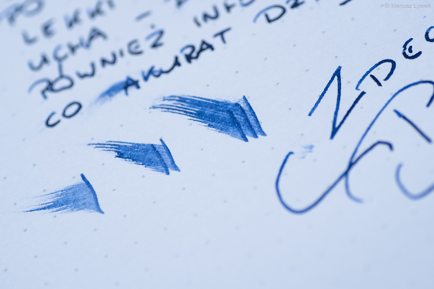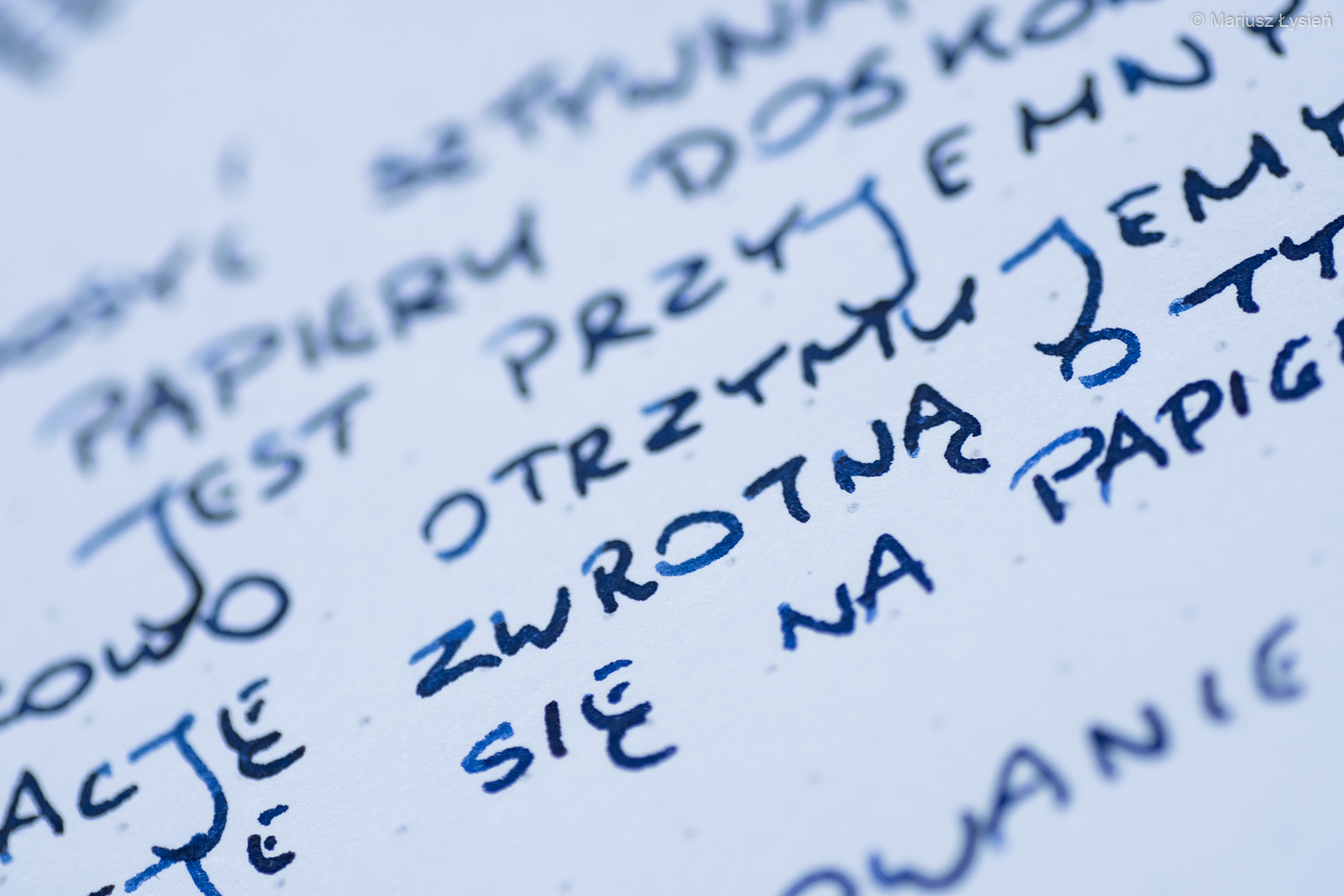 Ilość atramentu podawanego na papier jest obfita, ale bez zbędnej przesady – dzięki temu linia kreślona piórem jest odpowiednio nasycona. Cieczy jest dokładnie tyle ile powinno być według mnie.