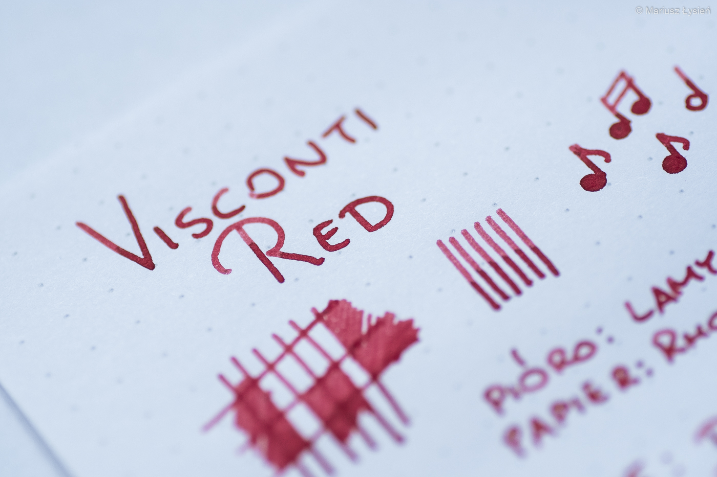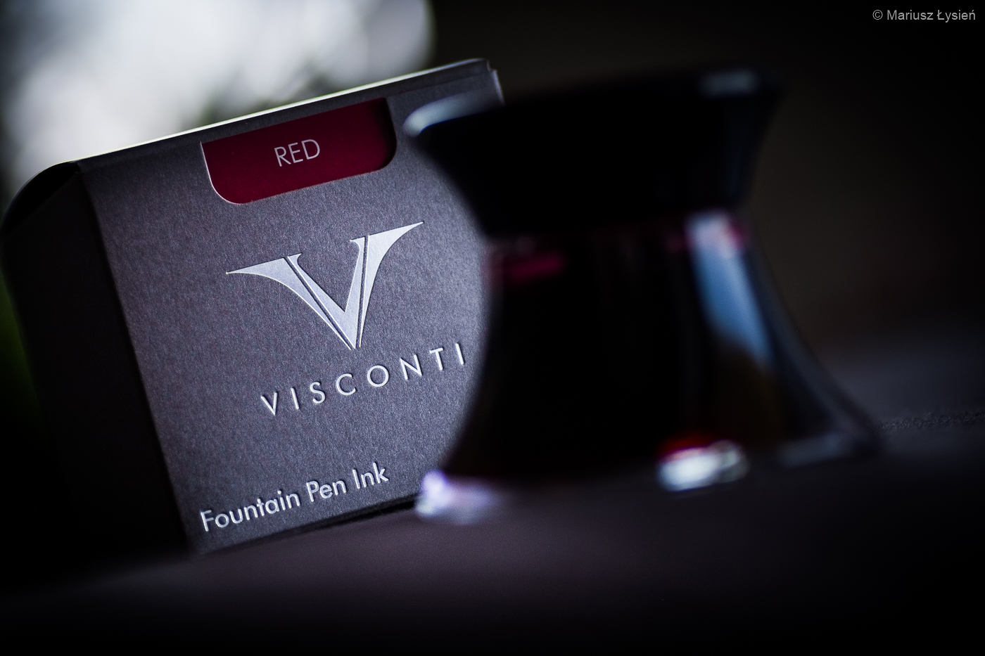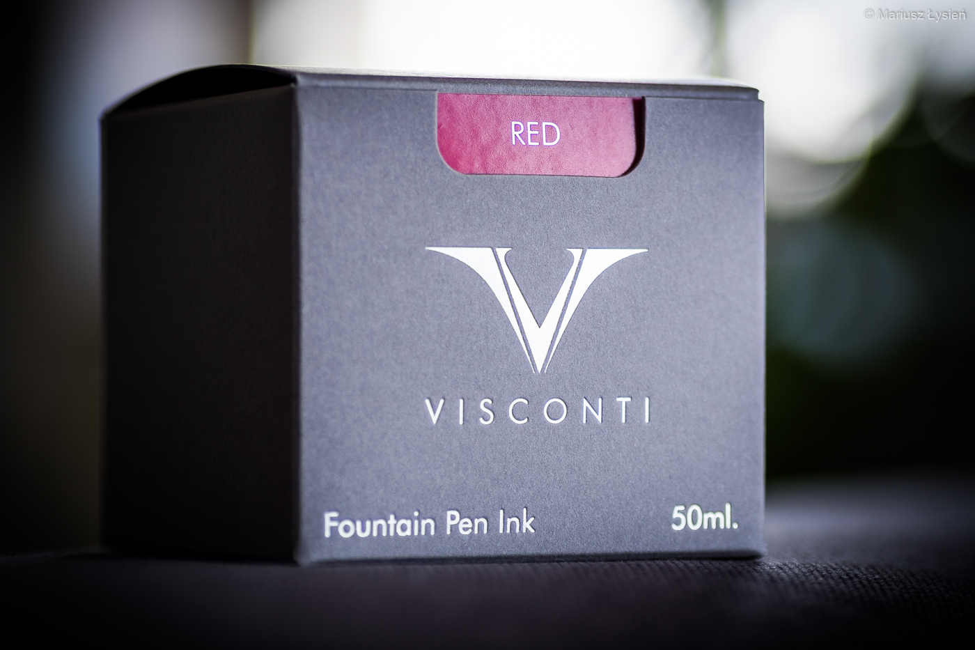 Visconti Red to bardzo dobry czerwony atrament. Zdecydowanie polecam go także osobom, które poszukują czerwonego atramentu, który wpada w lekko burgundowy odcień. Cieszy mnie fakt, że Visconti nie tylko stworzyło ciekawą formę kałamarza, ale że powrócono do użycia szkła. Zawartość oczywiście też jest jak najbardziej godna uwagi. Przyznam, że po kolorze czerwonym, chciałbym przyjrzeć się bliżej niebieskiemu i turkusowemu.