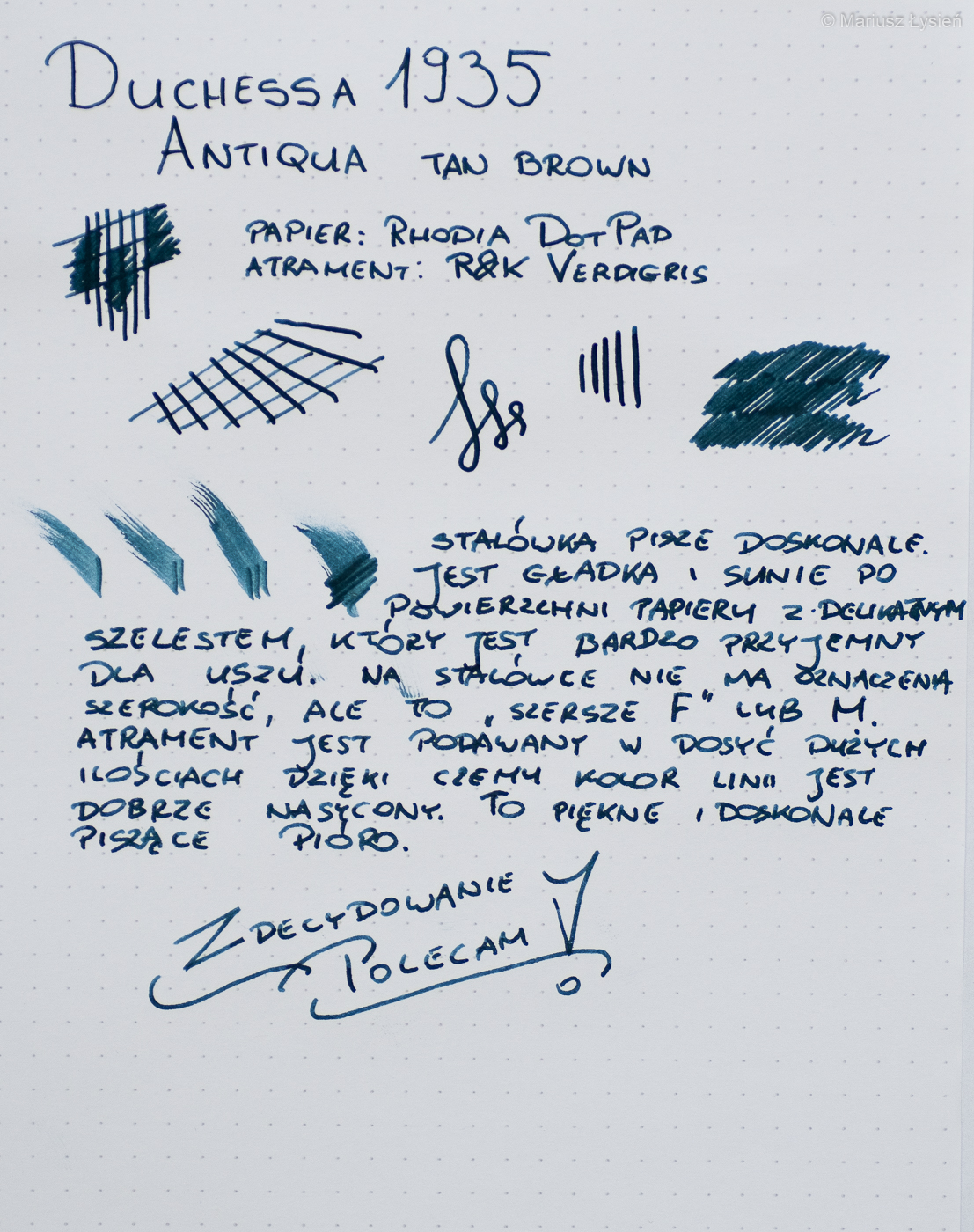 Podziękowania dla firmy INNER – TOMAR S. C. będącej dystrybutorem marki Duchessa 1935 za dostarczenie pióra do recenzji.