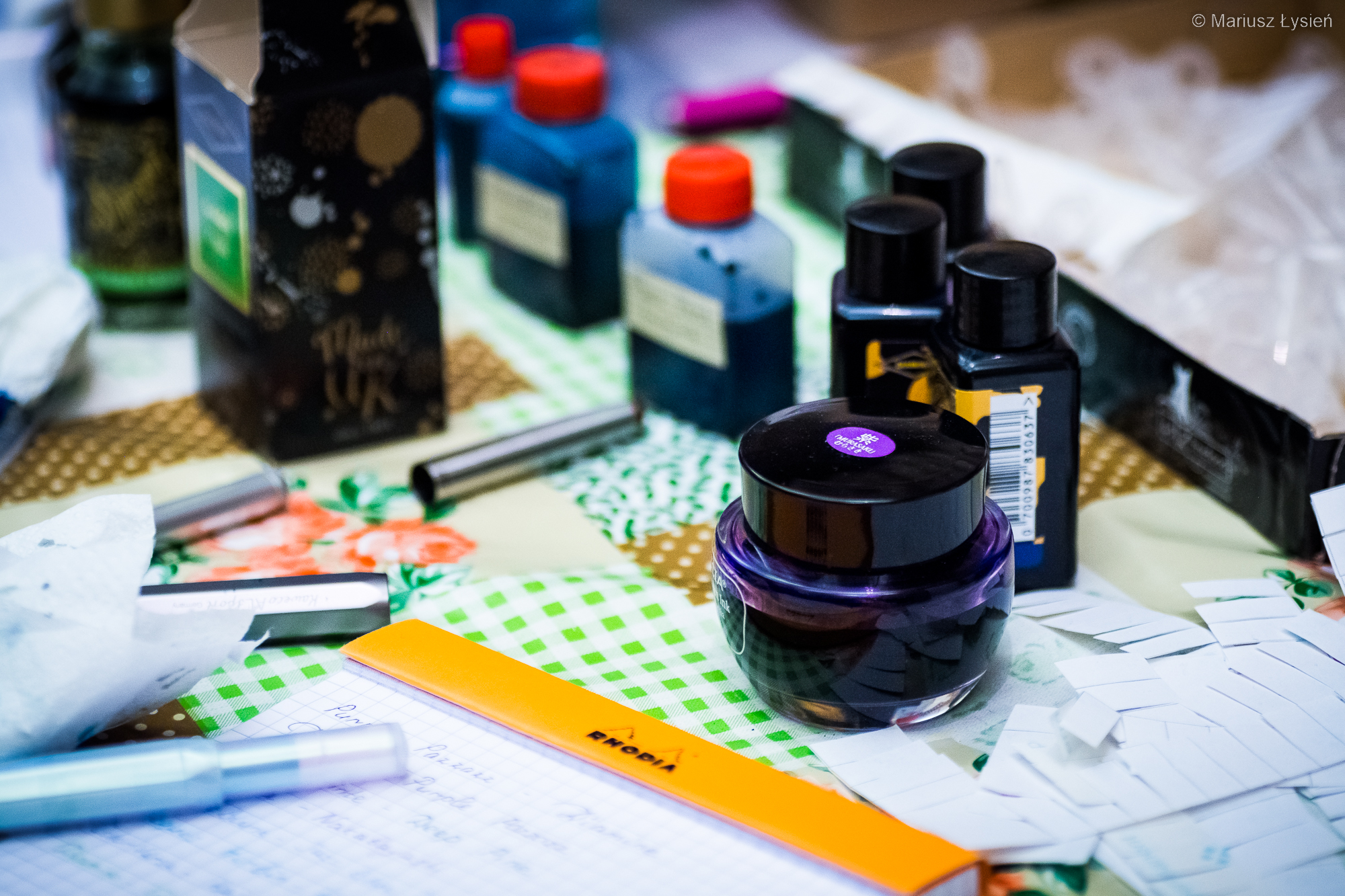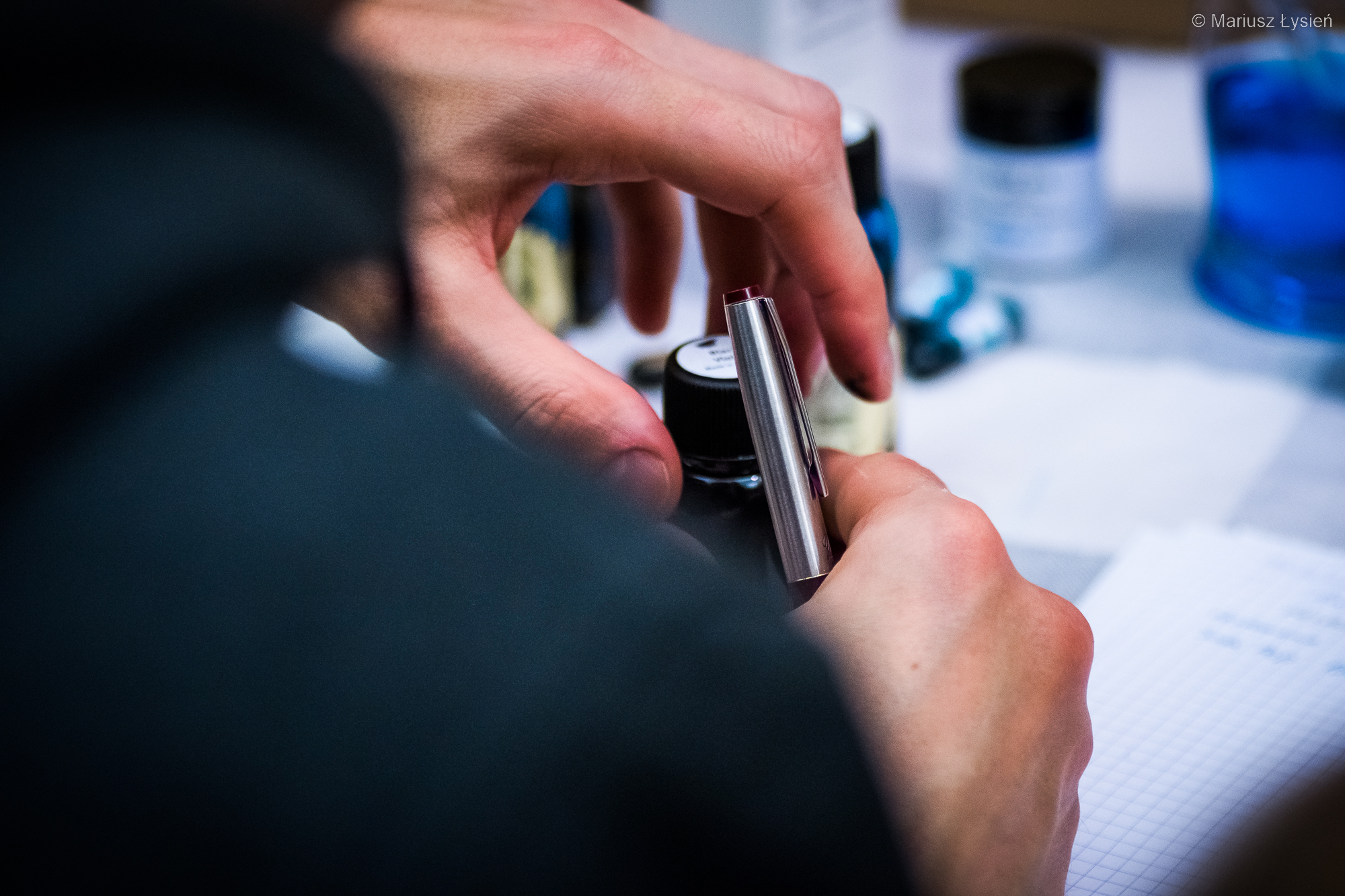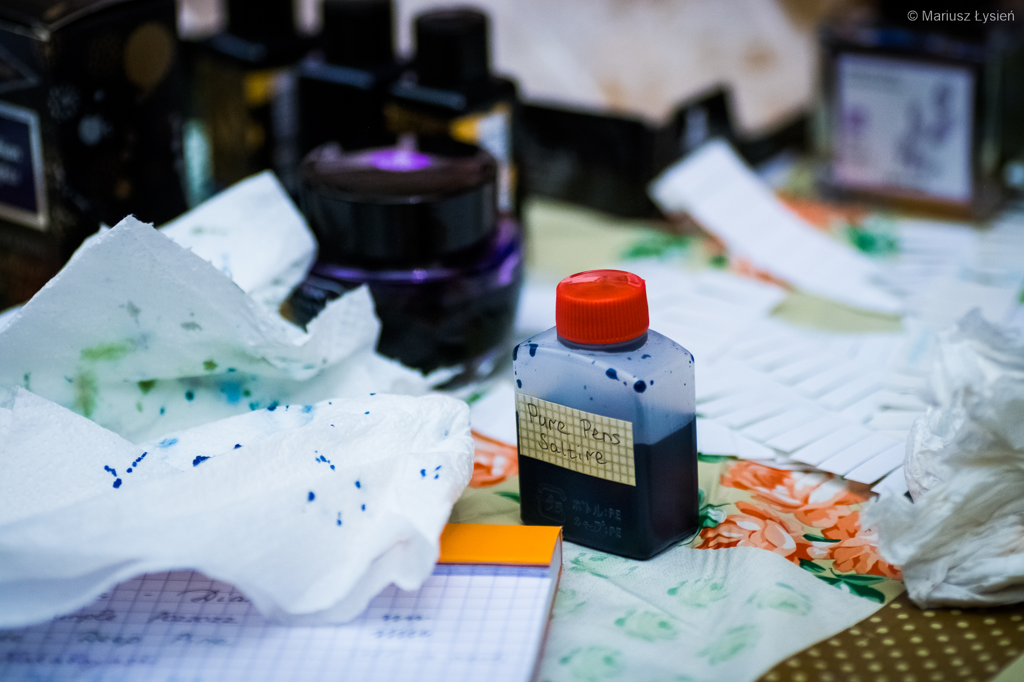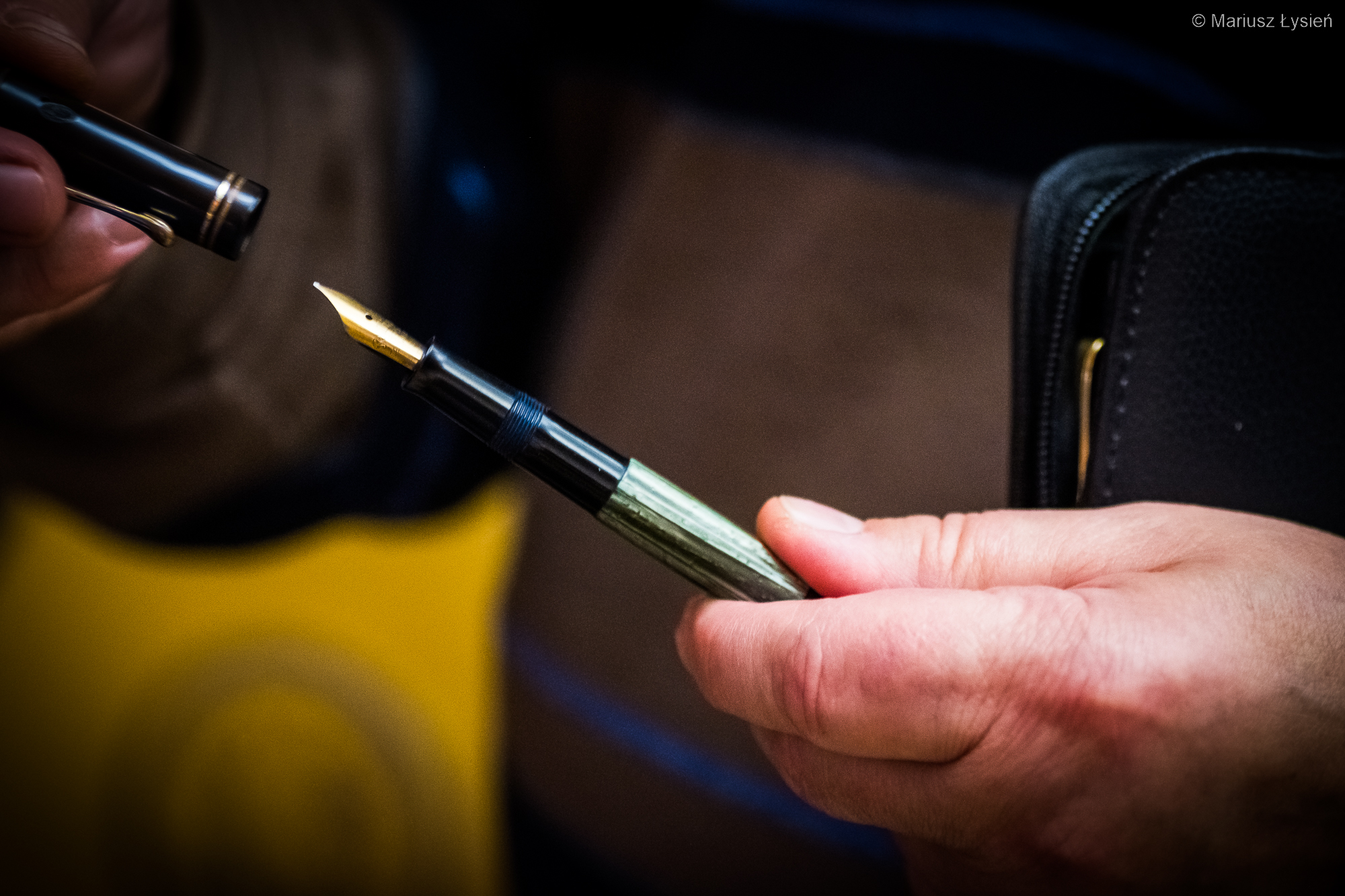 W tym roku udało się przywrócić możliwość uczestnictwa w Pelikan HUB, czyli spotkań miłośników piór wiecznych, ze szczególnym uwzględnieniem produktów firmy…. Pelikan oczywiście 🙂 W poprzednich latach możliwość taką odbierała nam pandemia. Cieszymy się więc, że mamy możliwość znowu spotykać się większym gronie. W tym roku nowy zespół organizatorów przygotował spotkanie w bardzo klimatycznej kawiarni, której mury mogłyby opowiedzieć niejedną historię (być może jej spisanie pozwoliłoby w końcu wyczerpać zupełnie nasze zasoby atramentów 😉 ). Tradycyjnie jednak czas płynął za szybko, wobec czego nie udało się porozmawiać jeszcze na wiele tematów, które są jednak świetnym pretekstem do kolejnych spotkań. Zresztą uważam Pelikan HUB 2022 za spotkanie bardzo udane i świetnie zorganizowane. W tym miejscu również tradycyjnie chciałbym podziękować wszystkim za spotkanie i rozmowy, a organizatorom oczywiście za ogrom pracy i zaangażowania włożonego, by takie spotkanie w ogóle mogło się odbyć. Takie spotkania poza oczywistym wymiarem towarzyskim, są również doskonałą okazją do poszerzania wiedzy, wymiany spostrzeżeń i doświadczeń oraz próbek rozmaitych atramentów (jak widać miłośnicy piór wiecznych należą do osób odpowiednio przygotowanych – czasem nawet w specjalistyczny sprzęt). Nie obyło się również bez powrotu z kolorowymi rękami. 😉