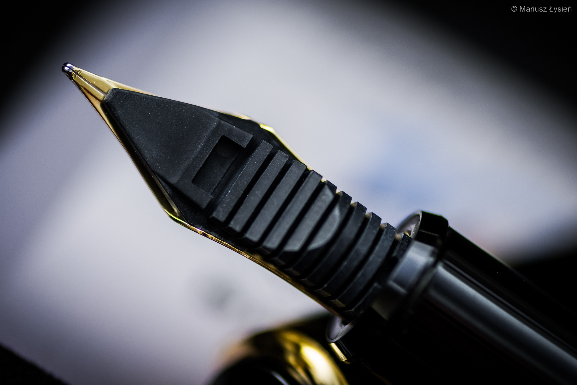 Wykonana z 14 karatowego złota próby 585 stalówka, również nie przypomina tej, którą kojarzymy z piór #3776. Zarówno ornamentyka jak i kształt nawiązują do pierwszych piór z tej serii. W egzemplarzu, który fotografowaliśmy, zamontowano stalówkę o szerokości M.