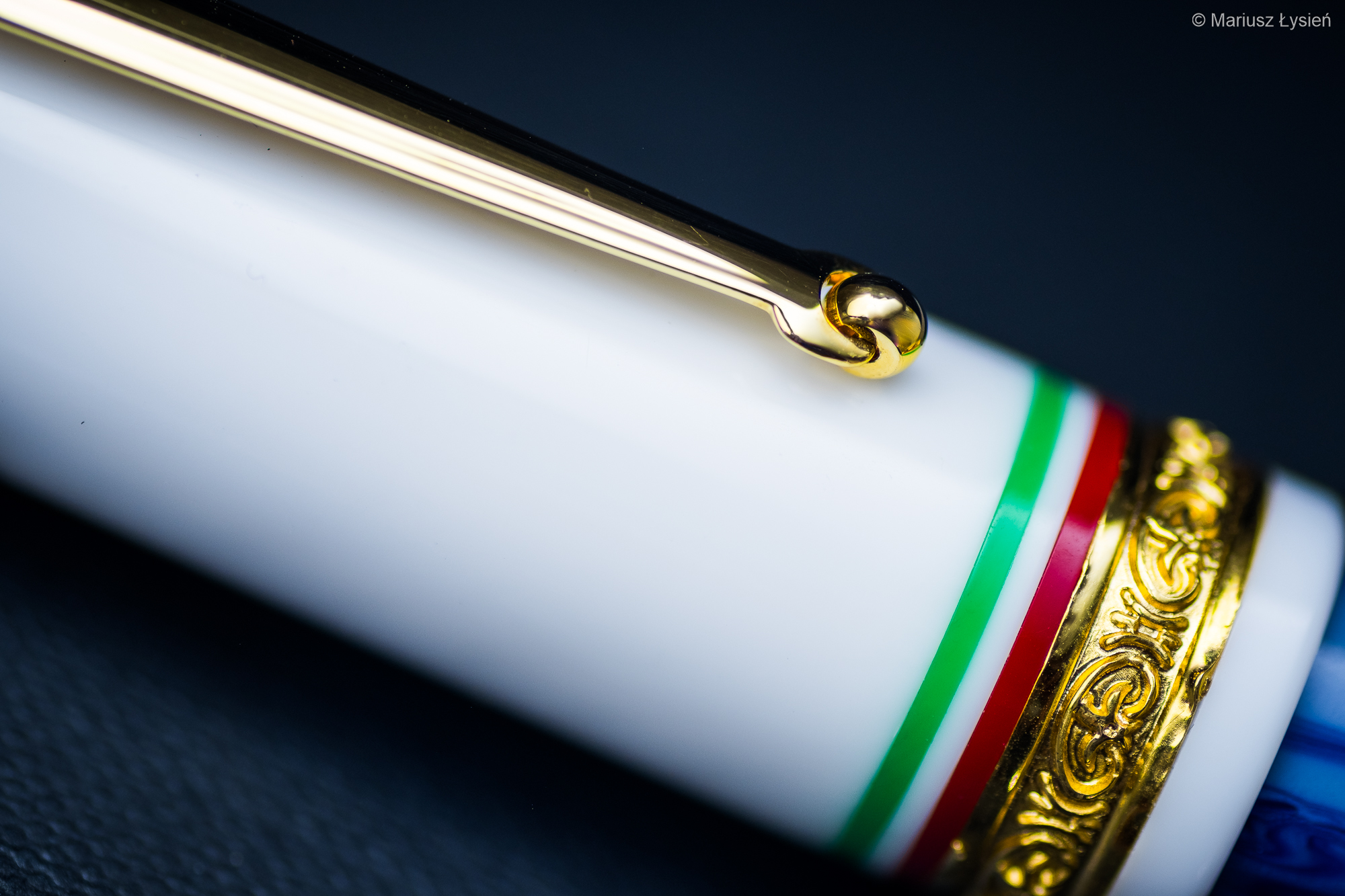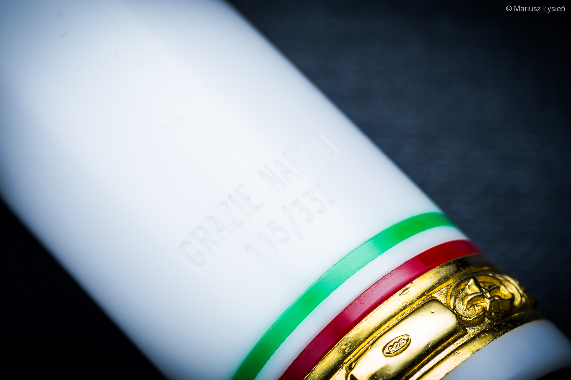 Elementy metalowe zostały pokryte warstwą złota. Na szczycie skuwki wygrawerowano cyfrę 3, która nawiązuje do wspomnianej wcześniej liczby zwycięstw. Prosty i elegancko się prezentujący klips otrzymał charakterystyczną dla wielu włoskich piór „kuleczkę”. Ma ona za zadanie ułatwiać nasuwanie klipsa na okładki notesów czy elementy garderoby. Sam klips jest raczej sztywny. Na skuwce umieszczono także barwy flagi Włoch oraz ozdobny pierścień, który wykonano ze srebra sterling, co potwierdzają stosowne próby. Na skuwce wygrawerowano również nazwę edycji oraz indywidualny numer każdego z 333 wyprodukowanych egzemplarzy.