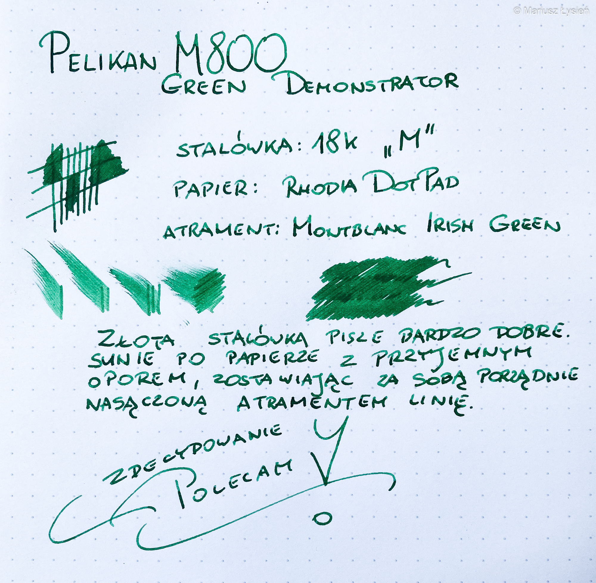 Pelikan Souverän M800 Green Demonstrator to ciekawa alternatywa dla klasycznych barw M800. Jeżeli tylko stylistyka i kolorystyka Wam odpowiada, to nie wahajcie się z zakupem, gdyż w wielu sklepach pozostały ostatnie egzemplarze tego wariantu.