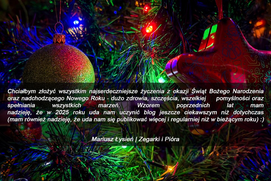 INFO Życzenia świąteczne i noworoczne Autor Łysień Mariusz Data 24 grudnia 2025 • ( Dodaj komentarz ) Udostępnij: Kliknij, aby udostępnić na Facebooku (Otwiera się w nowym oknie) Facebook Kliknij, aby udostępnić na X (Otwiera się w nowym oknie) X Kliknij, aby udostępnić na Pinterest (Otwiera się w nowym oknie) Pinterest Lubię Wczytywanie… Kategorie: INFO Tagi: best, blog, Bożego, Christmas, Narodzenia, New, nowy, nowy rok, rok, wishes, Year, zegarki, Zegarki i Pióra, świąteczne, święta, życzenia