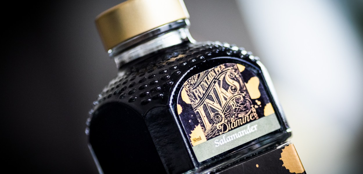 Diamine to atramenty, których paleta kolorystyczna cieszy każdego pióromaniaka. Tym razem trafił w nasze ręce Salamander. Ten odcień zieleni nazwałabym brudnozielonym – trochę szarości w połączeniu z niezbyt intensywną zielenią. Pióro: Lamy Logo „M” Papier: Rhodia DotPad Atrament Diamine Salamander Opakowanie: Atrament zapakowano w kartonowe czarne pudełeczko, z […]
