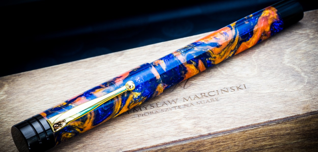 Podczas tegorocznego Pen Show Poland sporo czasu zajęło mi oglądanie próbek materiałów na stoisku Przemysława Marcińskiego. Przy okazji można było także przetestować kilka stalówek. Wszystkie pisały świetnie, a wybór materiałów kusił. Już wtedy byłem pewien, że coś zamówię. Moją szczególną uwagę przykuł pewien żółto-czerwono-niebieski materiał o dosyć szalonym […]